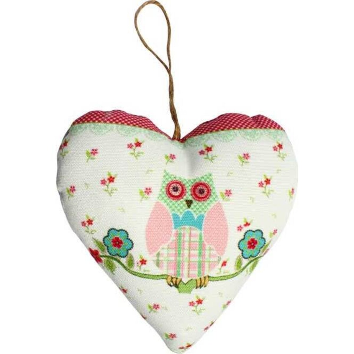 This charming plush item features a floral pattern with red and white polka dot tips. A wide-eyed, multi-coloured owl is perched happily at the center with a bright floral decal on either side. On the top is a piece of dark twine so you can easily hang this decorative accent wherever you desire, especially in a place that needs a dose of colour. You'll love staring at this sweet little owl on a daily basis.
