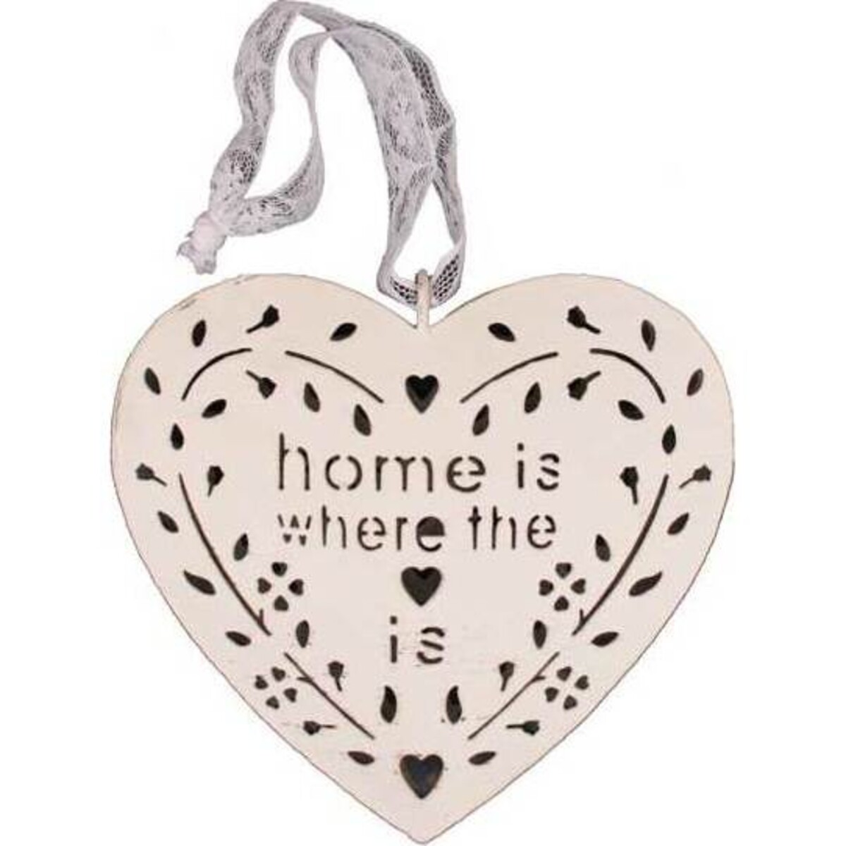 This small Home Hanging Heart can be just the reminder you need. The cream-coloured heart-shaped decorative accent consists of a black floral border along the edges with the phrase "Home is where the heart is" at the center. At the top is a thick ribbon so you can hang the accent wherever you please. The sign is sure to bring a smile to your face wherever you look at it.