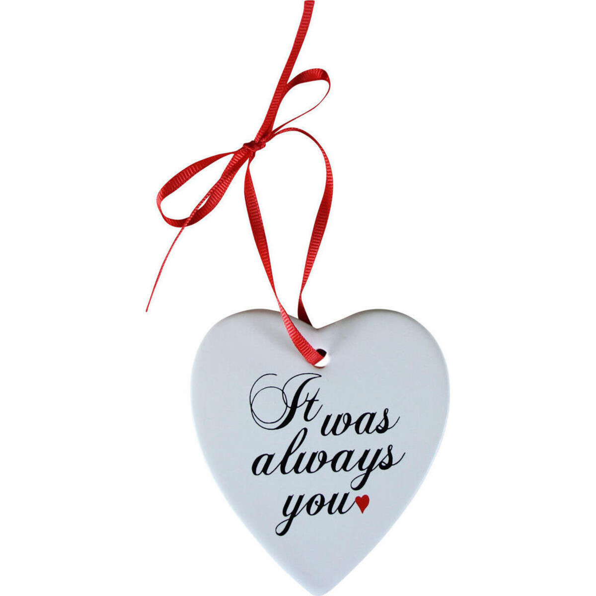 The beautiful handmade smoothness of the ceramic of course will be one of the main features that attracts one to the look of this hangable ornament. Could be used as a tree decoration during Christmas - after all, love filled messages are better than any other traditional ones. Could also be displayed from windows, hanging alongside curtains, draped around the neck of tall bottles or simply given as a party favour. There are so many avid reasons to love the heart right back. The ribbon attachment through the slot on the top make sit rather easy to place it in any space that allows it to freely dangle. You could also loop it around napkins which are placed on a special occasion dinner table or have it hang from the floral decoration as centrepiece does deserve a few great looking embellishments. The ceramic made heart is 9 cm in height and about 8 cm in width. Timid and delicate in looks yet packs in quite a beautiful impact in the space where it's placed.
