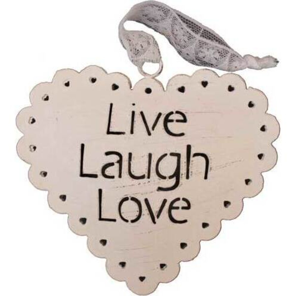 This fabulous LLL Hanging Heart sign is just the feel good reminder you need on a daily basis. The heart-shaped plaque with scalloped edges has a border consisting of tiny cutout hearts with a phrase in the middle that says "Live, Laugh, Love." A lovely lace ribbon is tied at the top to allow for easy hanging. Whether you keep it for yourself or give it away to someone who could use a little reminder themselves, it's sure to be a decorative accent that will undoubtedly put a smile on your face on a daily basis.