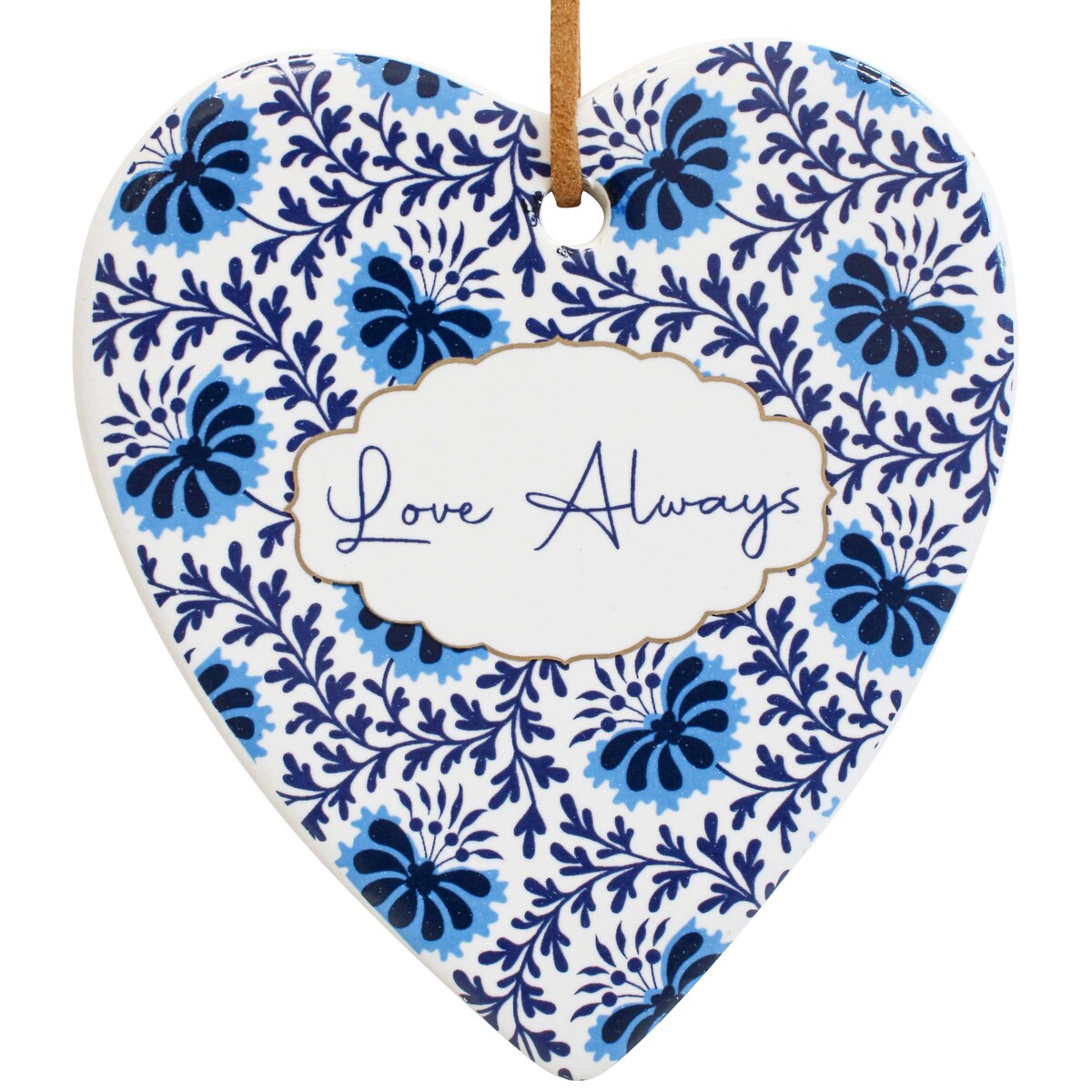This beautiful heart-shaped ornament is the perfect way to express love and devotion. The intricate design features a classic font that reads "Love Always," creating an eye-catching piece of art that will surely bring joy to any recipient. With its timeless message, this lovely ornament serves as a reminder of love and connection that will last forever. The leather belt, a touch of rustic elegance, ensures effortless hanging. Whether on a doorknob, a hook, or a cherished spot in the living space, this heart-shaped treasure will grace any corner with its undeniable charm. The Hanging Heart Love Always transcends decoration; it's a visual ode to love's enduring power, a beacon that whispers, "I'm always here, forever and always." This heart-shaped gem is the perfect gift for a loved one, or even just to keep close as an adored keepsake. It will bring light and love into any space - no matter how far away they may be.