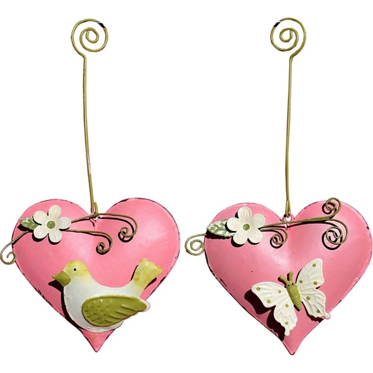 Celebrate feminine flamboyance with this pair of lovely decorative ornament that never fails to draw out a smile to any girl, lady or woman's face. Whether it's for a little girl's dainty designed pink themed room or an ultra feminine work desk, go ahead and add this standout pair of decorative piece. This one is perfect for any female, of practically any age. Designed with delicate bird and butterfly details, these pair of pink tin heart ornaments can definitely capture the whims and fancies of every female heart and send it aflutter. Go ahead and buy a few sets for your home or better yet, wrap them up as gifts for baby showers, birthdays and other important occasions. It's a great addition to any interior décor and a great way to add that soft feminine touch.