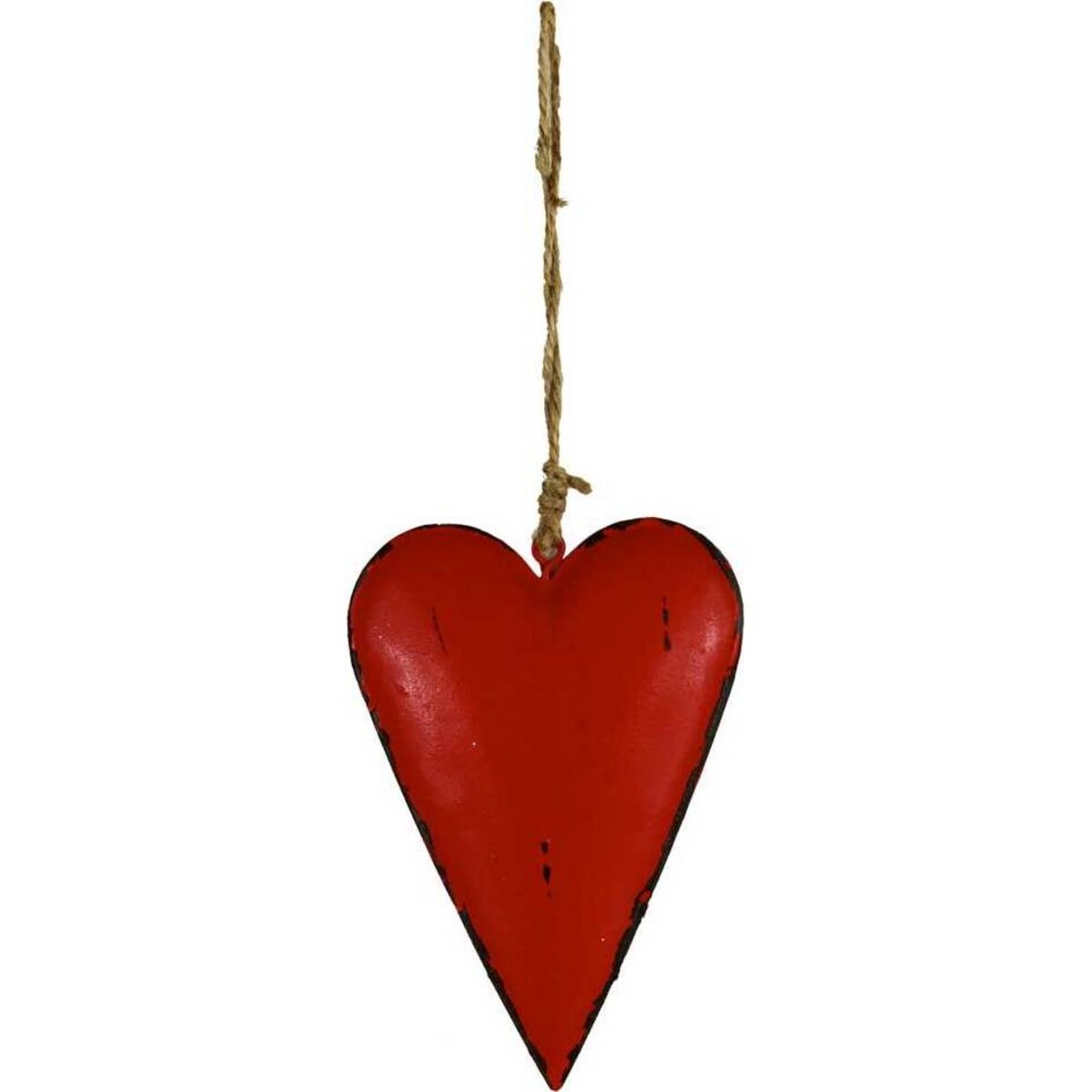 Lavida has always arrived at a contemporary design however steeped in traditional craft it may be and bringing the happy mingling of the two has always resulted in stellar pieces like this hard to be missed simple offering .This metal heart comes perfectly suited for shabby chic interiors where gloss and polish is taboo. This red heart when hung from a window or from a door curtain will instantly add a lot of character to the rest of the decor with its rustic finish and hard to miss solid presence. The heart hangs from a tiny little loop on top that has a rough knot made of rope to make the look even more earthy and in sync with shabby chic needs.