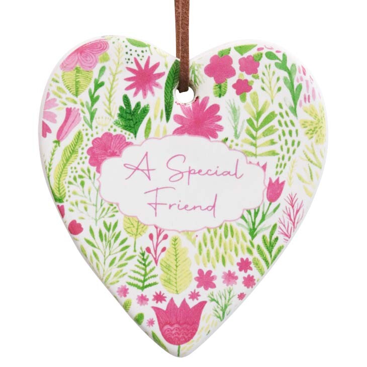 Our Hanging Heart Special Friend is one of those lovely gifts we think customers will pick up and smile about. It’s hand-crafted and finished, so no two pieces are identical - every heart has its own character. Being made from ceramic, with a touch of real gold, it’s got a nice little bit of weight to it. Not too heavy though, so it’ll work hanging from a key hook, lamp switch, or even just on a special spot on the wall.