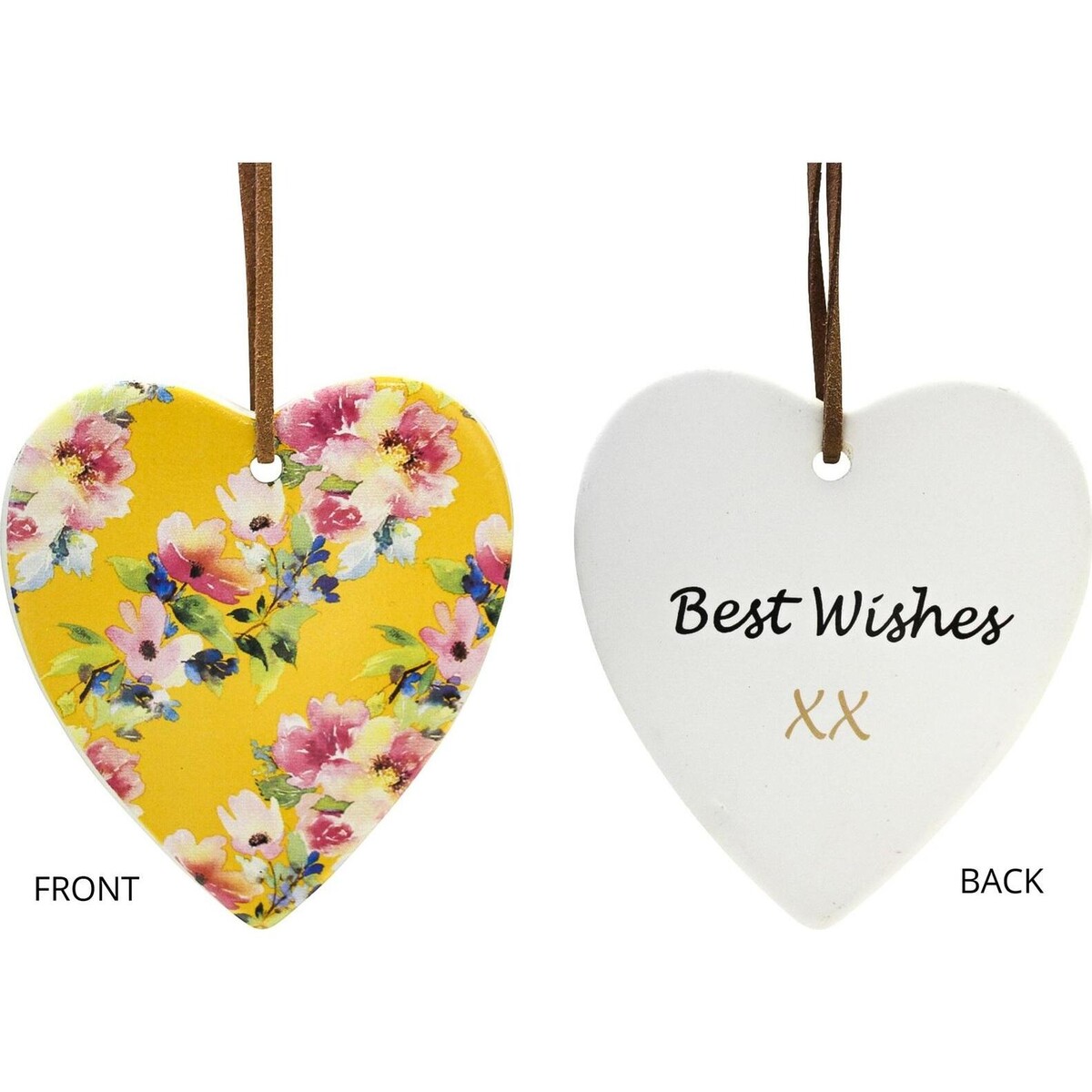 This ceramic heart decoration is an endearing gift to give on Birthdays, Valentine's Day Christmas, Mother's Day, Engagements and Retirement. A pack of these can even be given away as favours at a summer or beach party, Wedding or any other event. The back of the heart has "Best Wishes" written and it can even be personalised by painting a short message or adding embellishments. The light structure has a flat back, which helps with the versatility of how it can be exhibited. Due to the unique ceramic mould, there may be slight differences in the shape and smoothness of each heart.