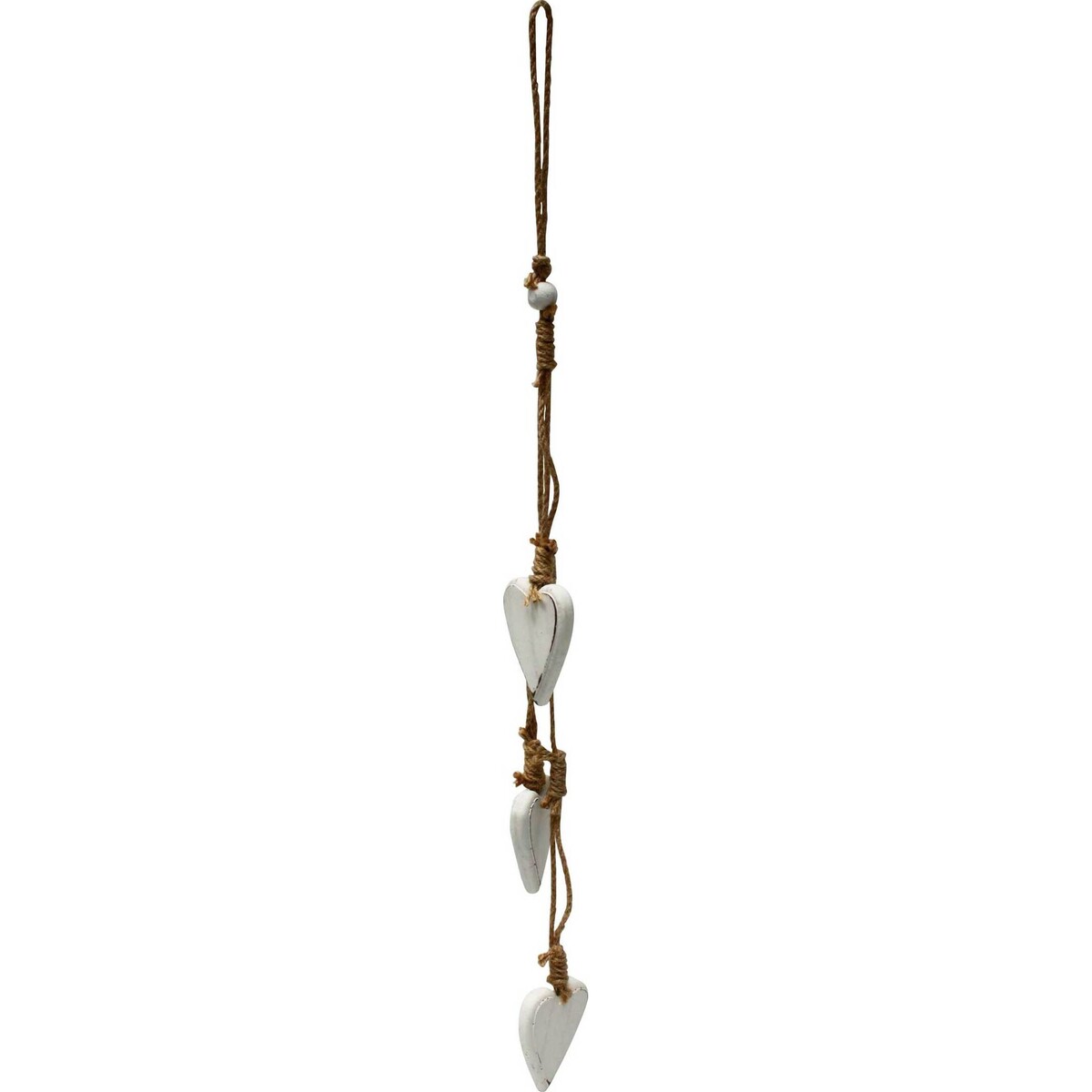 The term "heartstrings" gets new meaning with the Hanging Hearts Mazzo from LaVida. This hanging country accent features three small wooden hearts tied along individual lengths of jute rope. The distressed, whitewash - finished hearts are suspended by a jute loop hanger, and are a sweet accent to any space.