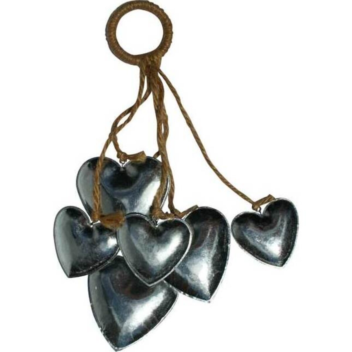 LaVida ties together a set of six puffy metal hearts with its Hanging Hearts Metal Multi. Created with a shiny, yet rustic, tin finish, each different - sized heart is individually tied with slim rope and attached to a rope - covered ring. The ring can be used to hang the arrangement almost anywhere - from a kitchen cabinet to a key hook - as a friendly reminder that love fills the space. The entire hanging measures 28 centimetres long and its simplistic design sure to enhance any style decor from country to traditional to contemporary.