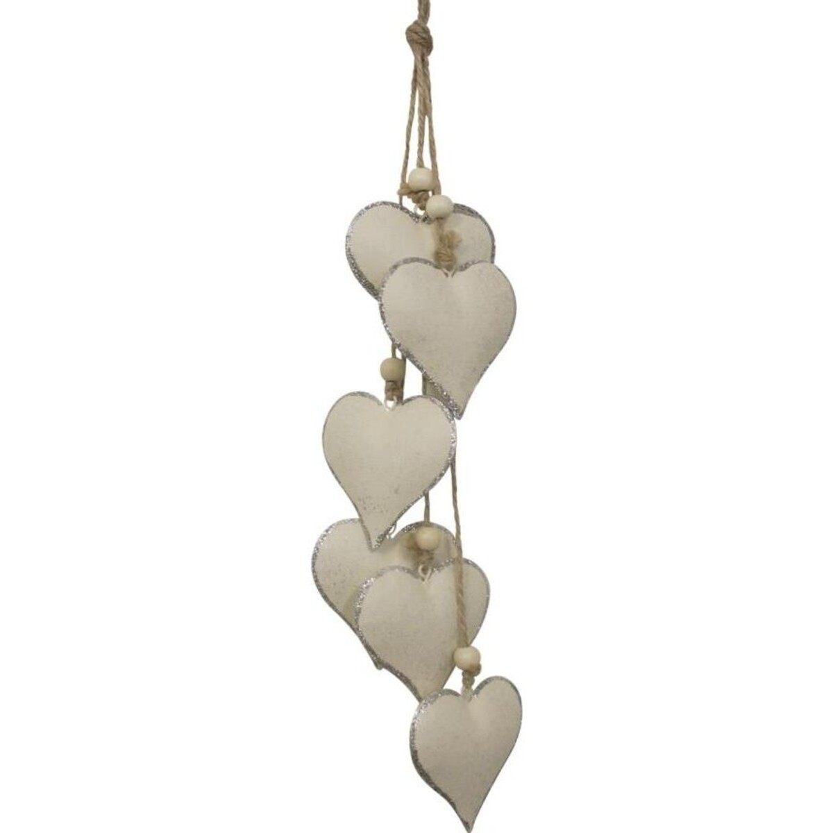The six hearts that create this spectacular accent is made of metal and has a vintage white colour, slightly peeling and faded on the edges. The white gets highlighted beautifully with the sprinkling of silver. Adding hearts in your d?©cor is perhaps the simplest means to enhance the look with a kind of cheer and joyous feel that aligns perfectly well with several kinds of occasions - be it baby showers, your anniversary or retirement day - after all, all of these occasions are about showing a great deal of love. The string attached to the bunch is made of burlap adding to its vintage shabby chic kind of look. The silver dazzle makes it feel more ornate. The simple little hangable accent can be as great to look at when placed in the entryway as it would be when placed at the door or the window of your home - where it can dance and twirl as it catches the wind.