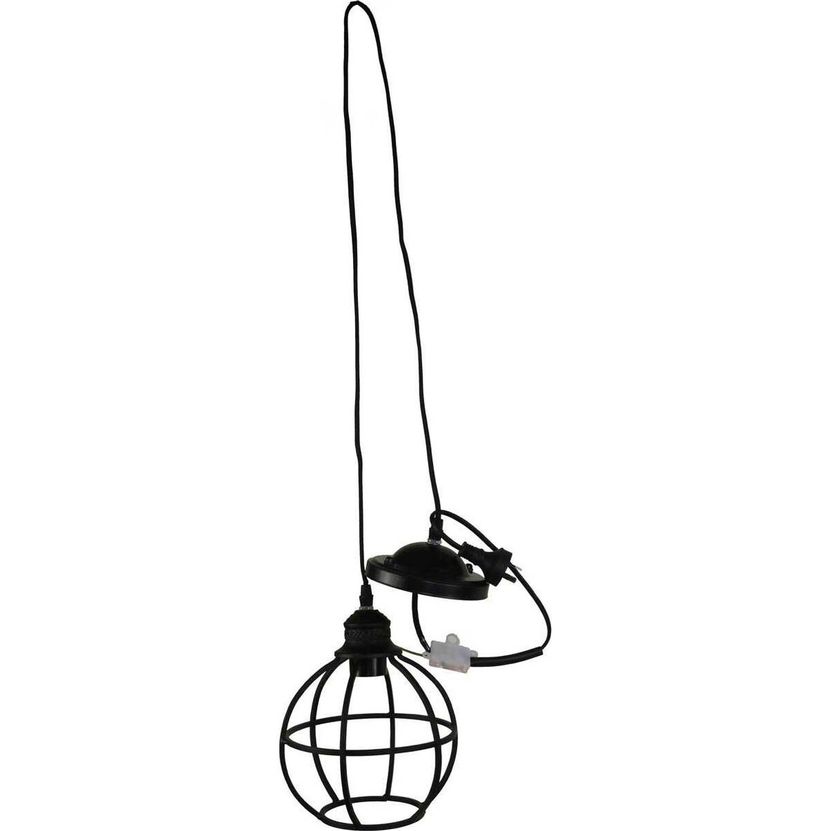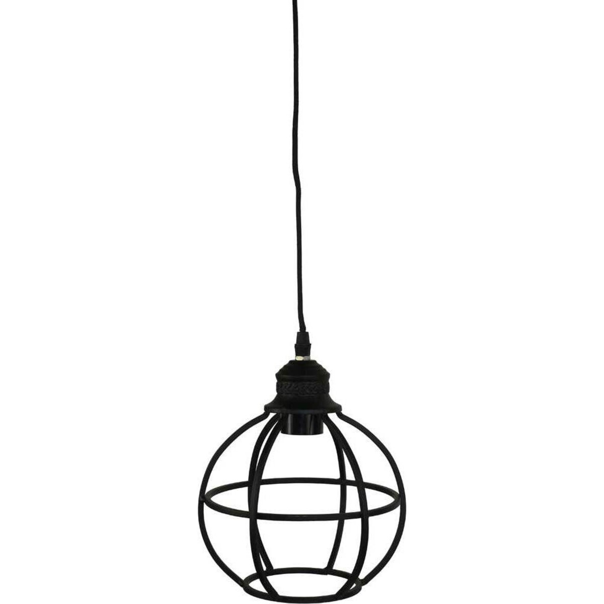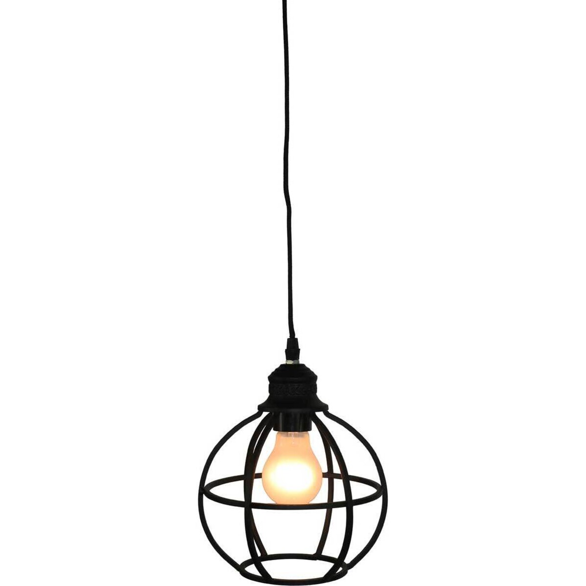 Made of metal, this simple metal hanging lamp has a round shape and offers just the skeletal shape of the orb creating a unique kind of lamp in which the bulb is as visible as the shade. The grid is simple in design and powder coated metal has been used to create the shape. It is about 20 cm in diameter and 23 cm in height and can be suspended from a corner or from any angle or ceiling right up to 1. 4 meters. One thus has the option of hanging is low or high as the need maybe. The simple design draws attention to the glow of the light rather than only the shade though its unique looks will hover around the lamp's design and style. Can also be used in combination with other kinds of suspended lamps that could be hung at varying levels.