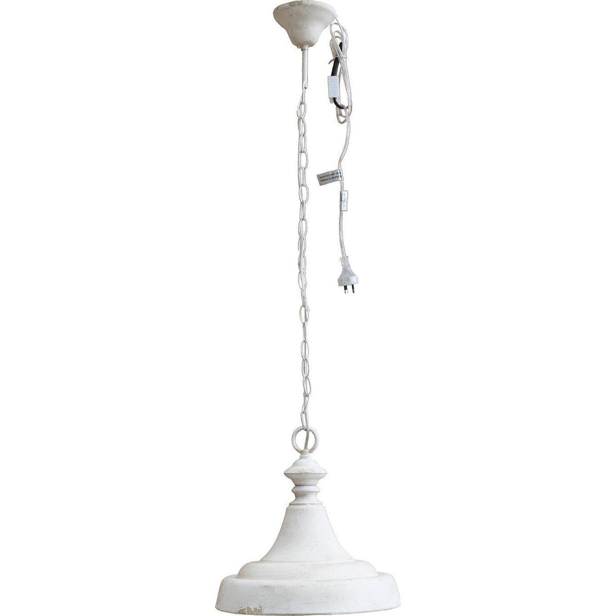 Made of metal and given a white paint effect this hanging lamp has the best of features to give your home a new sort of lighting effect. Unlike lights that are on walls, hanging lamps allow one to draw attention to areas that you want should be better lit and thus draw attention to their beauty. Place it above your bar, or above an area that you have recently decorated with some special artifacts. It's a creative modern style of lighting which will allow one to bring to focus certain spaces and thus add more of a deeper dimensionality to the look of that space. While considering lighting for larger rooms one could in fact create a set of such lamps hanging at different levels for a more dramatic look. The shabby chicness and the very rough industrial feel of the metal lamp shade adds that twist of rustic charm to a home that is verging on a vintage feel. The total length of the chain plus the lamp itself is 105 cm while the shade is only about 35 cm long and 31 cm in diameter, perfect thus for a bar or living room as well.