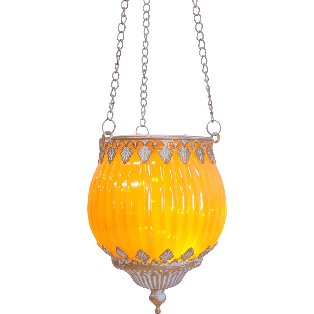 That pop of colour on the orange glass looks incredible during the day, but things change up completely when it gets dark and those LED lights come on. It’s just… mesmerising. Metal details at the top and bottom keep things feeling balanced, especially with that little edge of whimsy from the small leaves around the trim.
