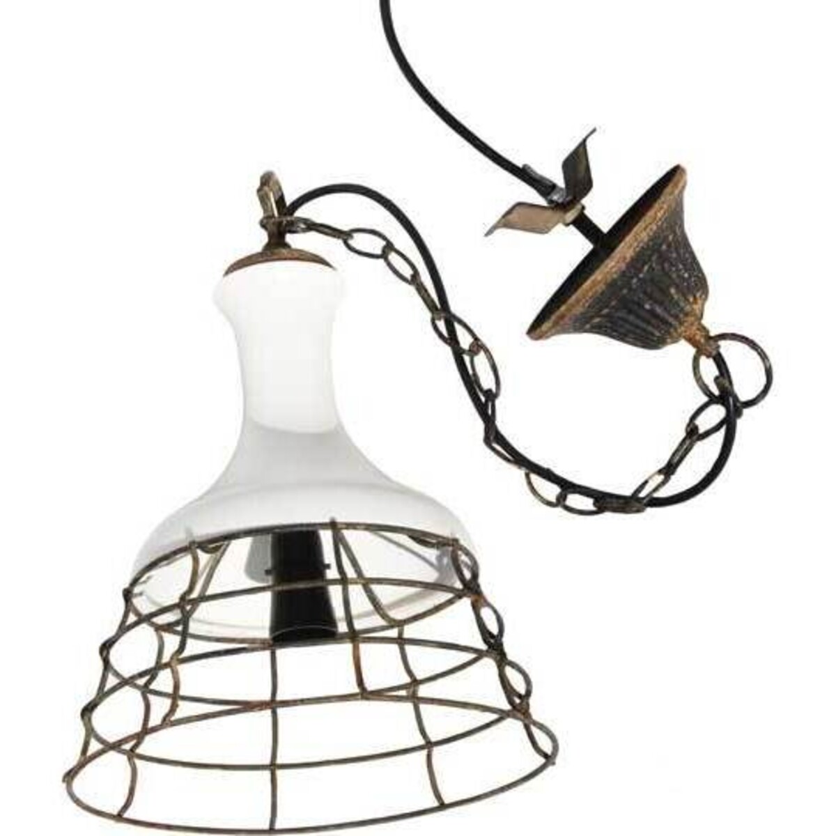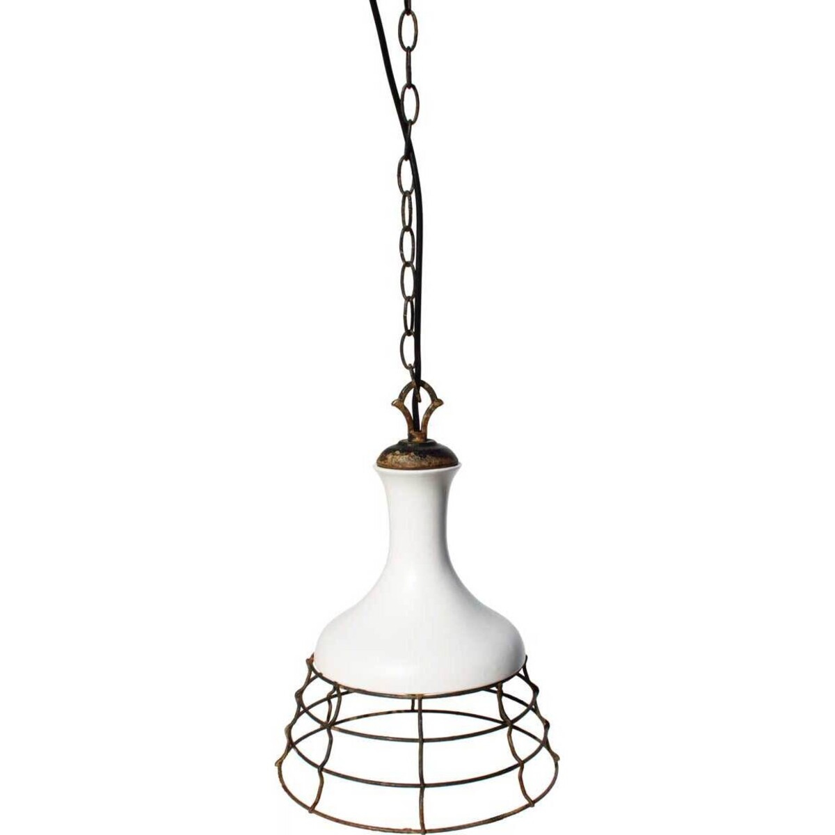 Make a big difference to the way your décor gets its rightful attention by adding the right kinds of hanging lights in places that need highlighting. When you place hanging lights you instantly bring focus to certain spaces - be it the bar, the dining table, the console or the long gallery - a row of beautiful hanging lights is all it takes to make the difference in the décor. The rustic metal parts looks especially gorgeous when set against the white painted portion of the shape. Much credit goes to the manner in which shape, colour and material have been blended together for this unique sort of look. Can be placed low for more drama - maybe over the bar counter or in a set of threes or twos in different levels. The length of the lamp is all of 38 cm while the diameter of its roundness is about 28 cm. Rugged and rich in design, lamps such as this is all you could need to illuminate your interiors with much style.