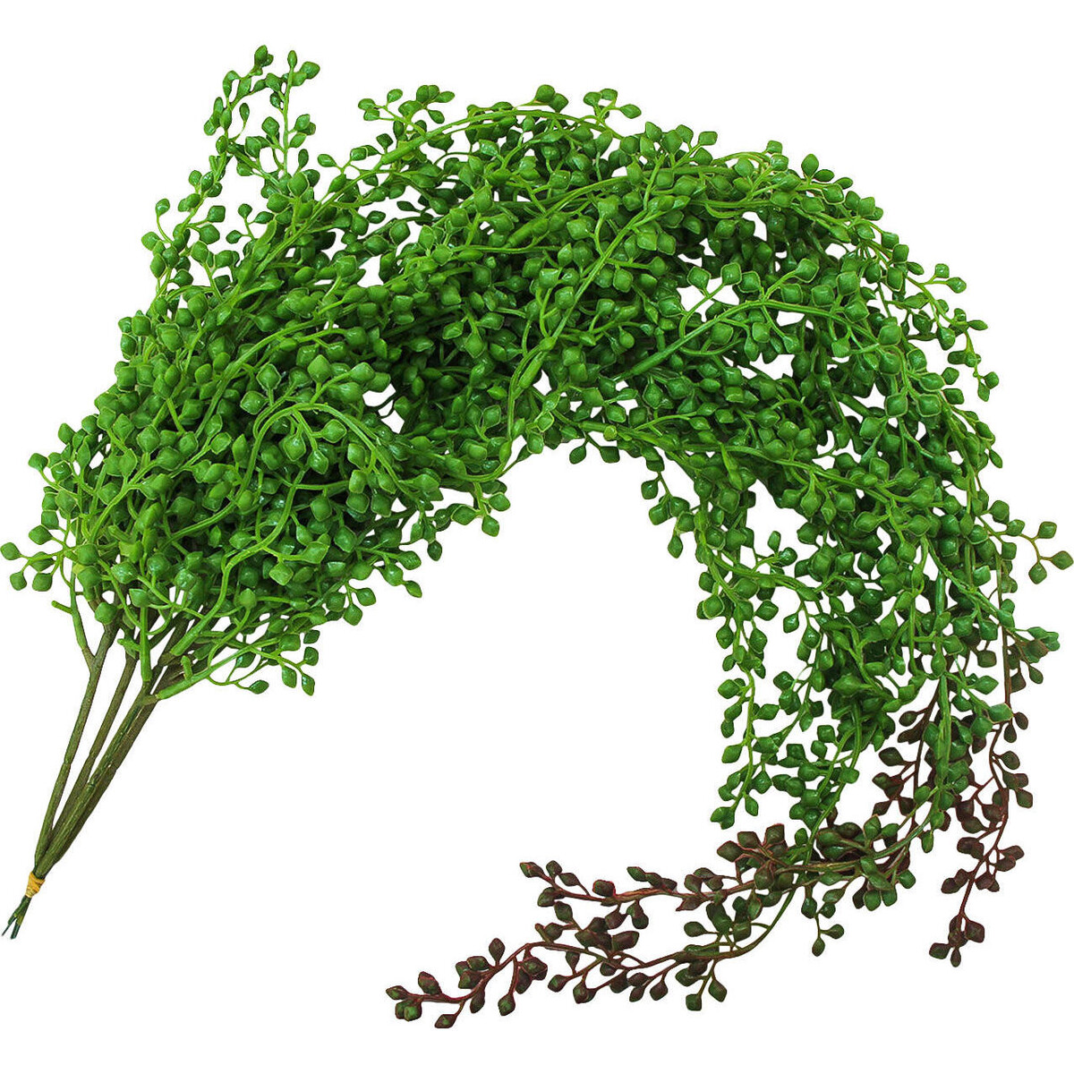 The faux plant has bene nurtured and inspired by nature-after what could be more pleasing than its drooping soft stem adorning a beautiful vase. This long soft stemmed addition in your vases will help enhance the beauty of blooms, be its natural or artificial. Made from very fine quality plastic the green lushness of its tiny bead like leaves feels cool to touch- and like real. Its tiny leaves have bene perfectly formed in terms of shape and colour. The tiny leaves add a touch of liveliness and make things look serene and peace filled all at once. The stem has thick plume like leaves that even if added to a large vase can hold its own without any additional blooms. They can simply be washed clean to look fresh and new. Add the summery mood to your interiors with this simple, inclusion form Lavida and update your summer ready look in your interiors.