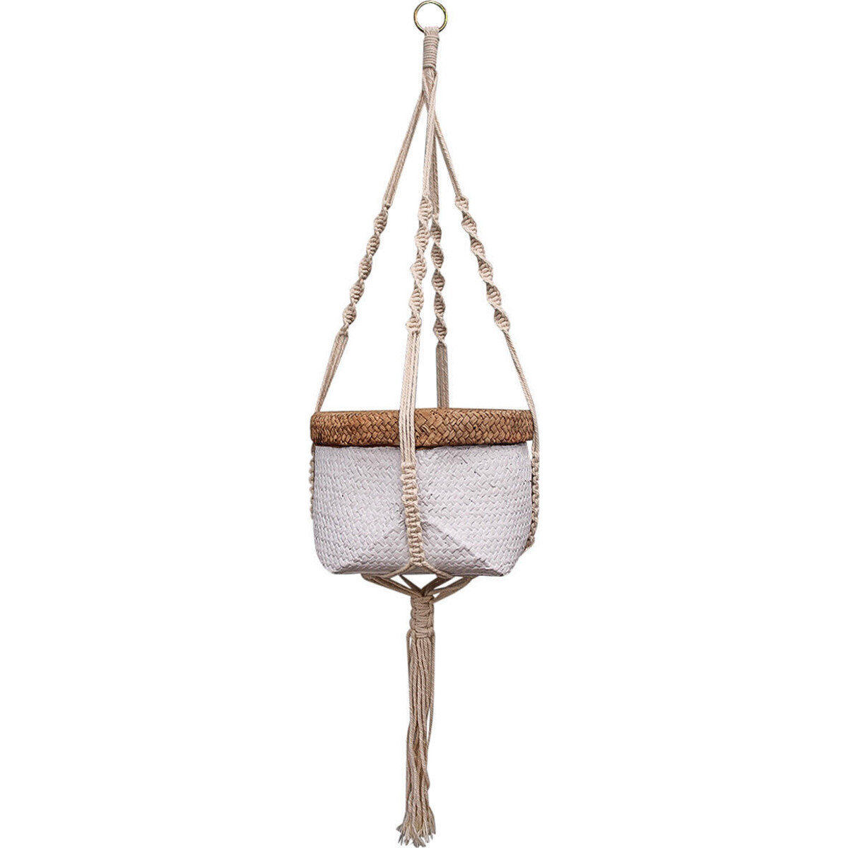 This rustic yet trendy cement planter pot has a slightly eclectic style which is always inviting with a gracious look that will match well with both a modern home and countryside or farmhouse-style home. It features a macramé twisted cord pot holder that allows the plants to hang outdoors or inside as per your choice. The lovely detailing on the macramé cord of this planter adds to the beauty of whatever plant is placed inside. It is ideal for the housing your larger sized garden plants, flowers or a bunch of lush fern plants.