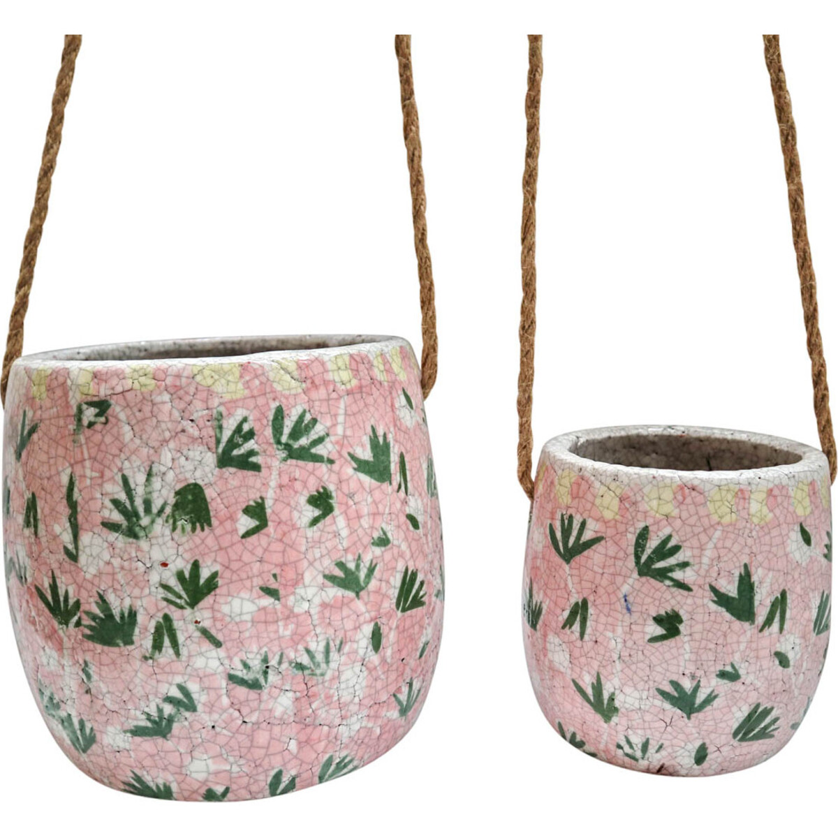 Apart from their decorative purpose, the global challenge of global warming has become an encouraging factor for the increased use of planters even by those who do not have enough time to care for potted plants. As a result, planters have become fast selling items. Space is however at a premium which necessitates the demand for space optimizing planters. One of such suitable planters is this Hanging Pot S/2 Funky Pink. With its unique and aesthetic radiance, it comes in a hanging design that comes with twine rope for easy hanging options in any part of the house. It can be sold as a set or sold individually.