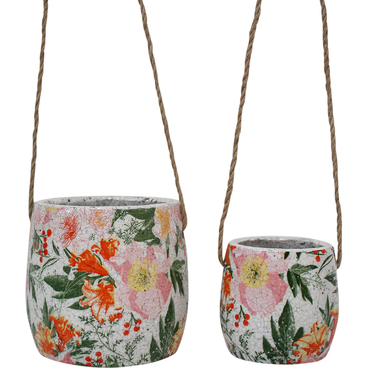 LaVida's hanging Pot S/2 Garden adds pleasant appeal to home décor. Fashioned from terracotta, it is glazed with a colourful nature themed motif which oozes of countryside decorative feel. With this product your customers are sure to be adding a product of both ornamental use and function to their interior and exterior décor collection.