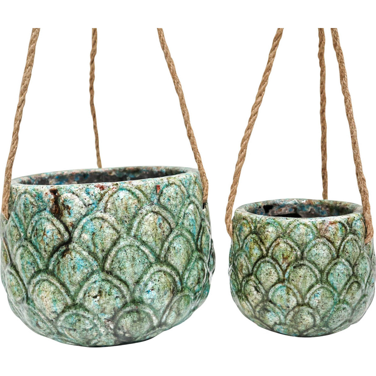 Strike a tropical balance in your living space with this captivating 2 set of hanging pot. This planter is cleverly crafted using terracotta earthenware material, and ornately glazed with the image of mouth-watering pineapples giving it a tropical feel. Both planters in this set come with a rustic twine-made hanging rope that makes its installation and use easy.