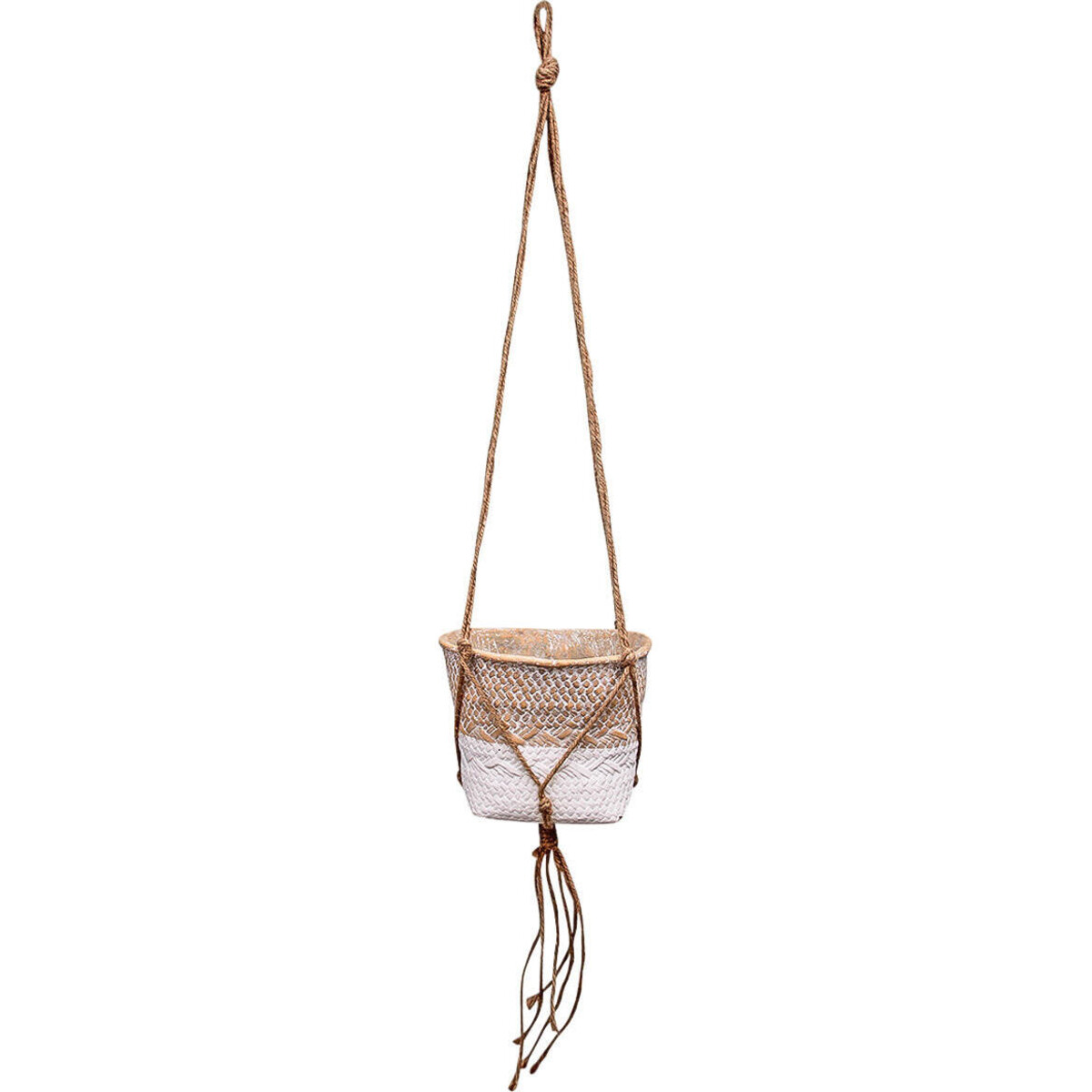 Plants are an easy way to refresh your living space in a classic and colourful style. This basket design cement pot in tones of white and brown with a lovely contrasting dark coloured rope hanger will accentuate your botanical garden along with adding dimension and style to it. The sturdy rope hanger holds the pot firmly in place and has a cute knotted tassel at the bottom for added charm. The rope is knotted into a loop at the top to hang in a hook and the total length including the rope hanger comes to 77cm approximately.
