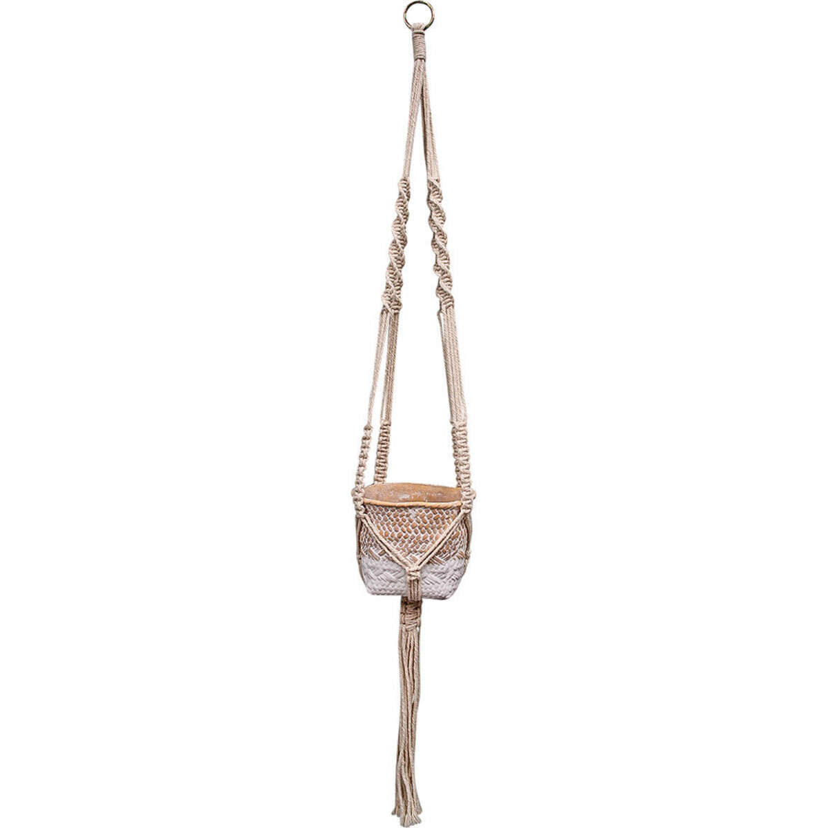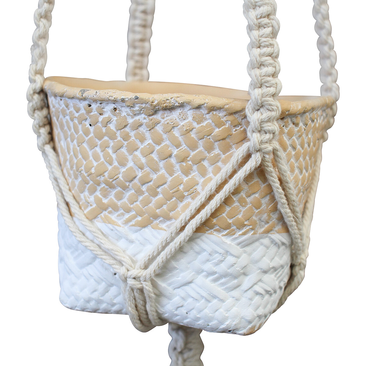 Crafted from cement, it has all the advantages of concrete such as strength, durability and weather resistance to stay well in the wind, hot, humid and cold season while in a covered outdoor area. Since it is entirely handmade, the quality details, textures and distressed finish add to the unique charm of each pot. It will perfectly complement an industrialized style condo and look great on the deck with a small succulent inside! Provide the best housewarming gift to friends and family with this cement hanging planter that is a perfect blend of style and functionality.