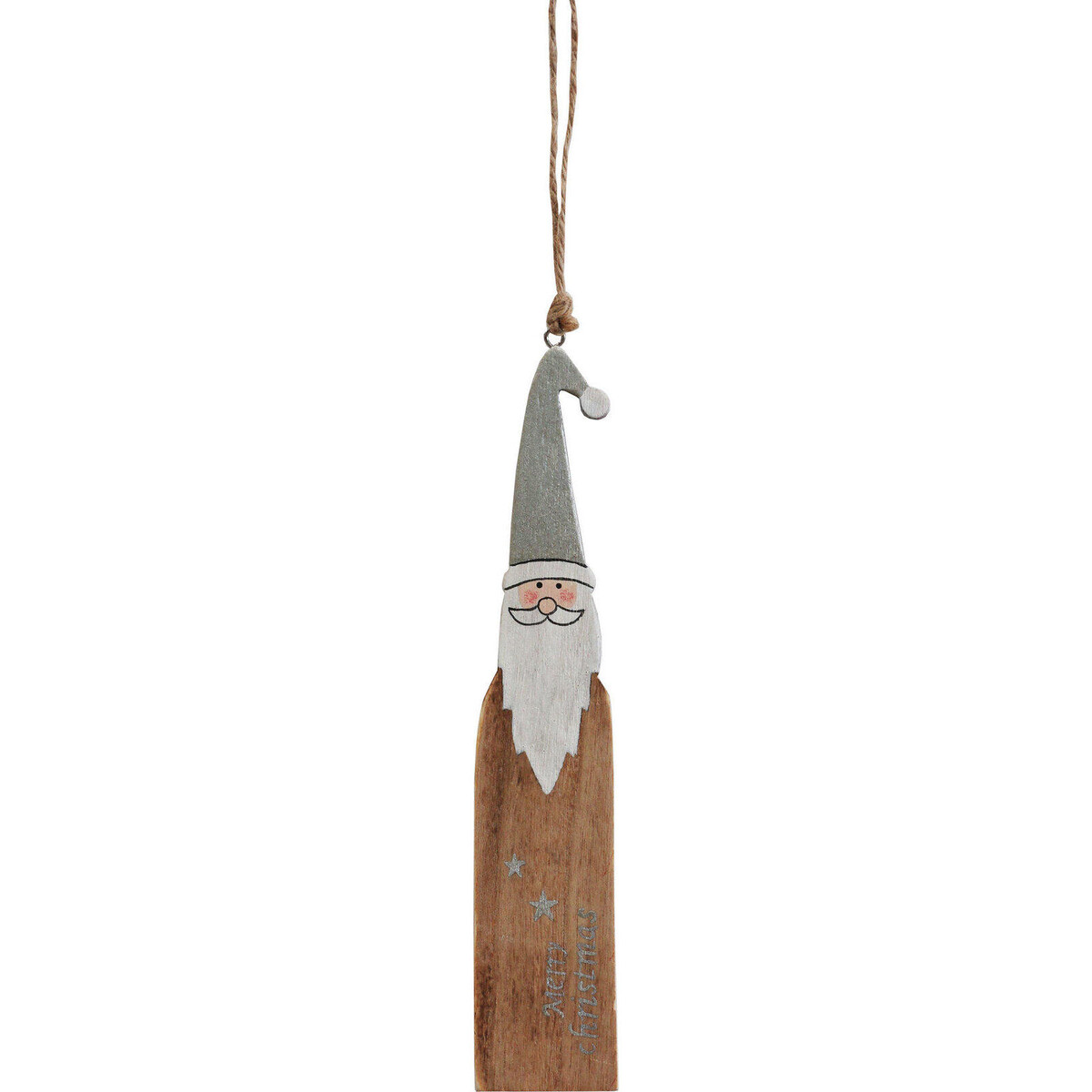 The most enduring of all symbols of Christmas, this gorgeous Santa has been crafted from wood, metal and has the sweetest most adorable presence. There is nothing ornamental or too detailed about it which adds more to its quaint rustic charm. The woody charm like Santa has a body that is created mainly from a piece of wood shaped simply - yet the detail of his hat, the beard, the silver hat and the word Merry Christmas scripted across in silver - all add to its inimitable style. The influence of an antique appeal with a more modern less fussy design all makes this a tell - tale Christmas décor that will set the pace for your home's look. Hang it from the tree you are wanting to make unique or place it as curtain ties - or simply use it liberally as a tag for the gifts you will hand out - it sure will be as much a keepsake from Christmas and loved as much as the gift that will be given. All of 22 cm in height the Santa is a mere 5 cm in width and fits into many areas of usage be it ,the tree, the outdoors décor for a special Christmas party or simply as any other tag.