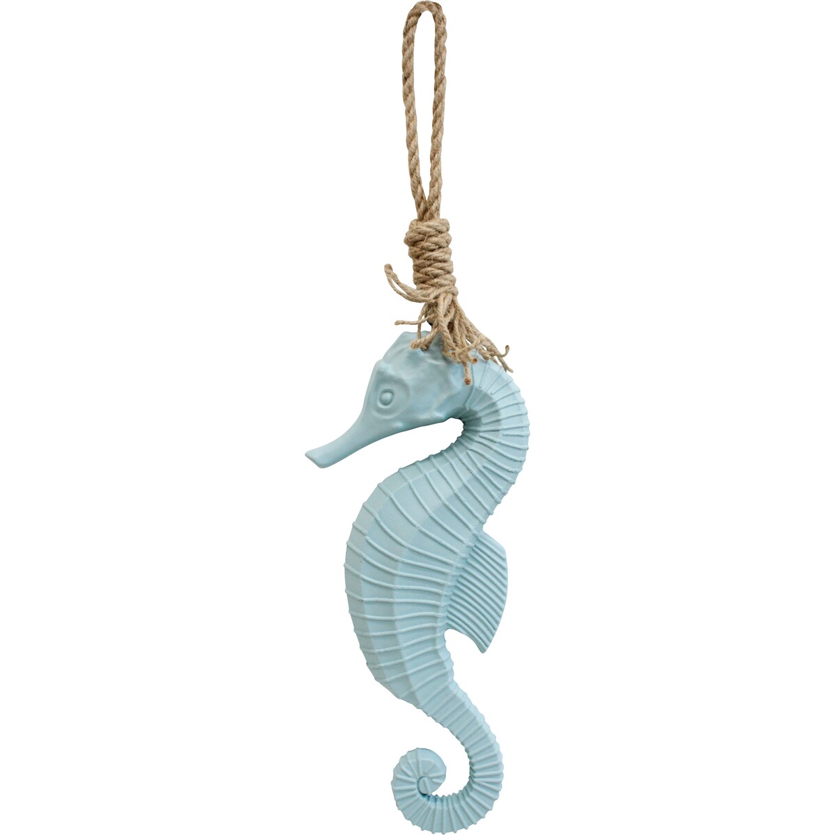 This hanging seahorse has a bit of a whimsical feel to it. We think it’s a really nice piece that brings in a touch of the ocean - perfect for any coastal-inspired home decor selection. It’s made from sturdy MDF, painted a lovely baby blue, and comes with its own hanger.