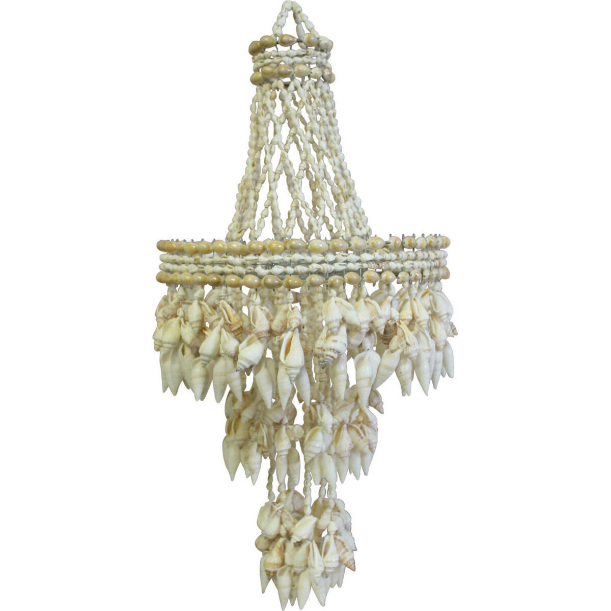 A simple little accent and go a long way in adding beauty to your spaces. Here is one that is made of tiny little shells in myriad colours and shapes that can be hung from the window or door and will spin and twirl with the wind. Beautiful colours the shapes reminding you of its relation with the sea. Lavida always brings for your home truly simple designs and yet they have quiet an impressive impact. Made of natural shells, this beautiful coastal decor accent, will make entire space liven up. This piece with its lattice like criss crossing strings of shells make up the upper body, while the cascade of tiny shells in a circular design makes up the lower portion. The beautifully alignment of cowries, conical shells and the really tiny ones makes the appearance all the more charming and varied. A chandelier pattern has been replicated with much finesses. Will lend so much more to homes that ware wanting the joyous, bright and cheery look of the seaside. This hangable piece is 56 cm in length and pans out to 26 cm in diameter.