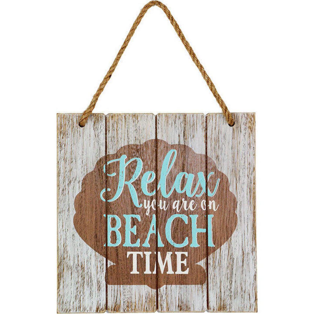 Your d?©cor reflects your loves and your life and thus gains its own kind of personality here is a beach themed sign board, a perfect choice for all homes that wish to give itself a marine theme. The sign board is made from wood and has washed in white face. The shell with its scalloped shape is the background on which the word stands out rather starkly. The hangable nature of this signboard can help make a dull spot in your room or den sparkle with the energy and vibrancy that the beach always brings with it, the board is all of 18 cm, in length and width and its weathered wood makes it look all the more appealing the shabby chic finish adds so much character to its otherwise simple kind of message. Instantly helps the space gain a relaxing more fun and cheerful appeal.