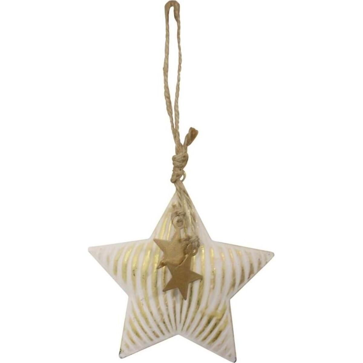Delight your interiors with the touch of holiday glamour with the range of hangable accents from Lavida that not just ad a spot of cheer to the space but also lend that touch of vintage charm this design in particular, inherently possesses. This tiny heart in vintage white colour has a serene kind of presence that is filled with an antique feel. The ribbed in gold looks makes it ornate the twine in burlap adds to its chicness albeit the shabby way. Adding several such hearts can make a wonderful display anywhere - be it on doorknobs - on the wreath that you have hung on the door or the tree that you have brought home this season. The tiny little heart is visible also because of its sparkling white colour and the glint if gold that enhances its beauty. All of 10 cm in height and 9 cm in width, it is an easy to hang accent for your home and spaces.