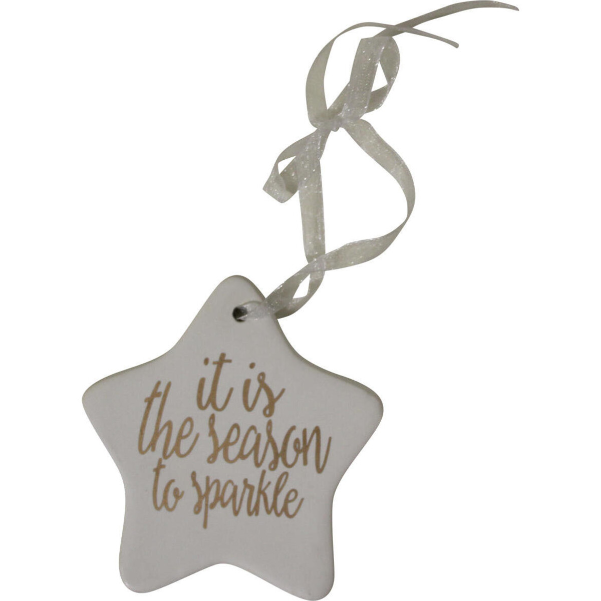 Be it like a gift tag, or like a tiny accent to help cheer up all those spaces that do not conventionally get decorated intentionally-like doorways, window arches, entryways, door knobs and the likes- and yet they need that little touch of beauty that can make all the difference. Here is that small little accent that could play that all important role by adding that sparkle of interest and beauty. Made form smooth white ceramic it is shaped like a five-pointed star with a message on its face that says -it is the season to sparkle. Indeed the tiny little star is going to bring in the cheer and the celebratory air that the message is wanting to bring in-apart from that the sparkle of white and gold is unmissable and rather an elegant means to add a tiny bit of beauty to smaller spaces.