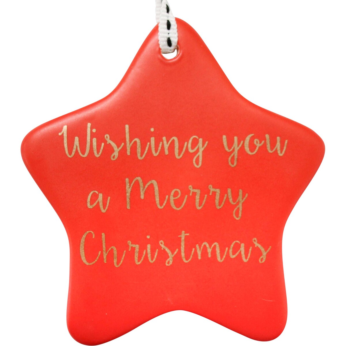 If you’re looking for a Christmas decoration that’s both classic and feels special, our Hanging Star Wishing Red might be exactly what you need. It’s that perfect pop of festive red - about 8 by 9 centimetres - with a heartfelt “Wishing you a Merry Christmas” scripted across the front. What makes this ornament interesting is the fact it’s handcrafted and finished from ceramic. So, every single star has its own personality. The way the gold lettering sits on the red background is striking - but sometimes you might spot a tiny imperfection here or there. That’s just part of it being individually made. People love these little quirks.