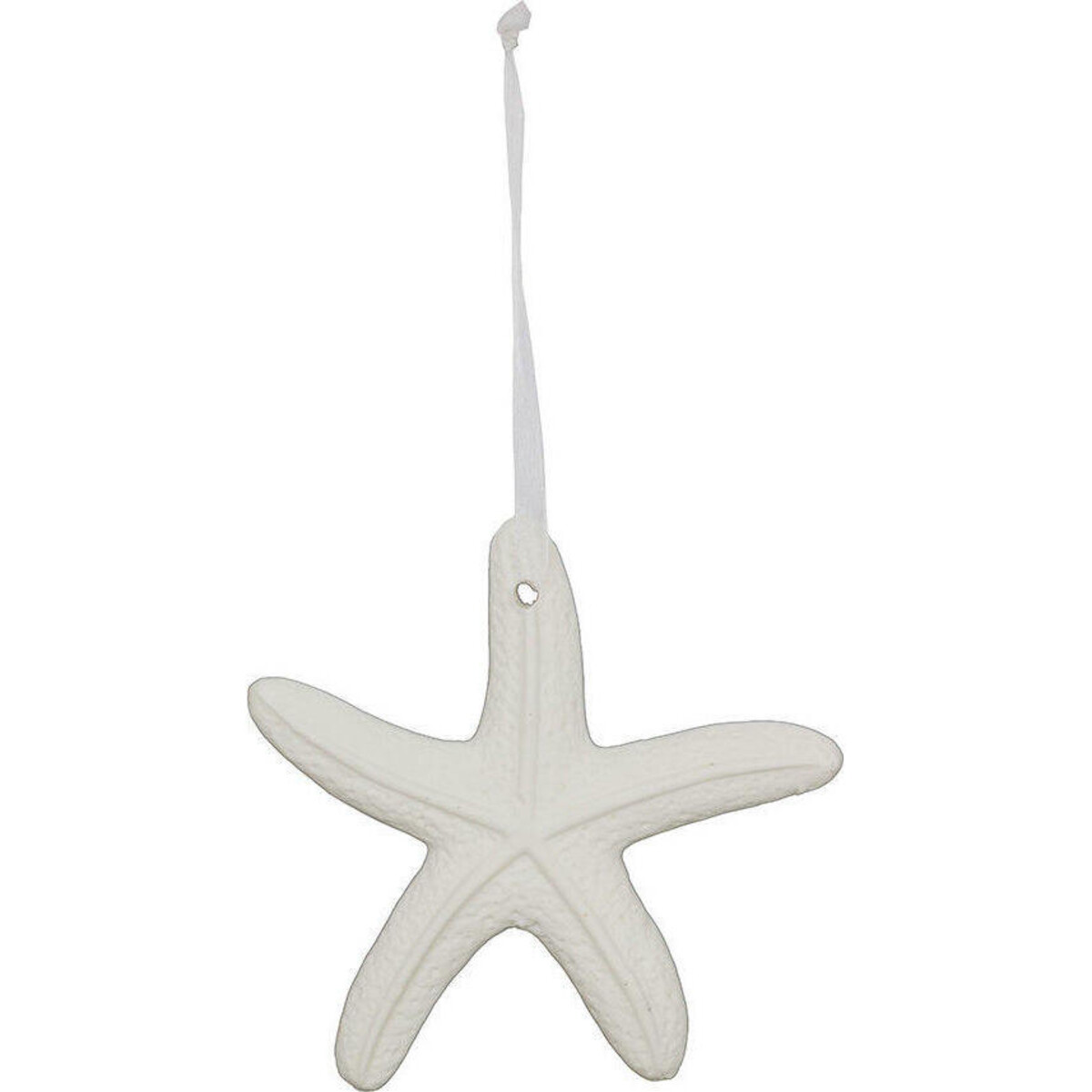 Made with the intention of lending your décor the advantage of a well - crafted feature for enhancing a coastal feel - this starfish has all it takes to give it a real kind of look. Bumps on its exterior, the slight look of glaze that has been achieved from the right kind of firing, and of course the fact that it has the size that makes it great as much for making it a suspendable artefact as it could be like a gift to someone who loves the sea and its creature as much. The porcelain made figure has a delicate look about it and its five - pronged body with 12 cm of length at its maximum would add a touch of serenity to the look of the space. Could be teamed up with lighthouses, other fishes and ships of course. Add a delightful means to make your dream coastal décor achieve its best look ever. Can be suspended from frames, hung from door knobs, and even right on the wall or on hooks.