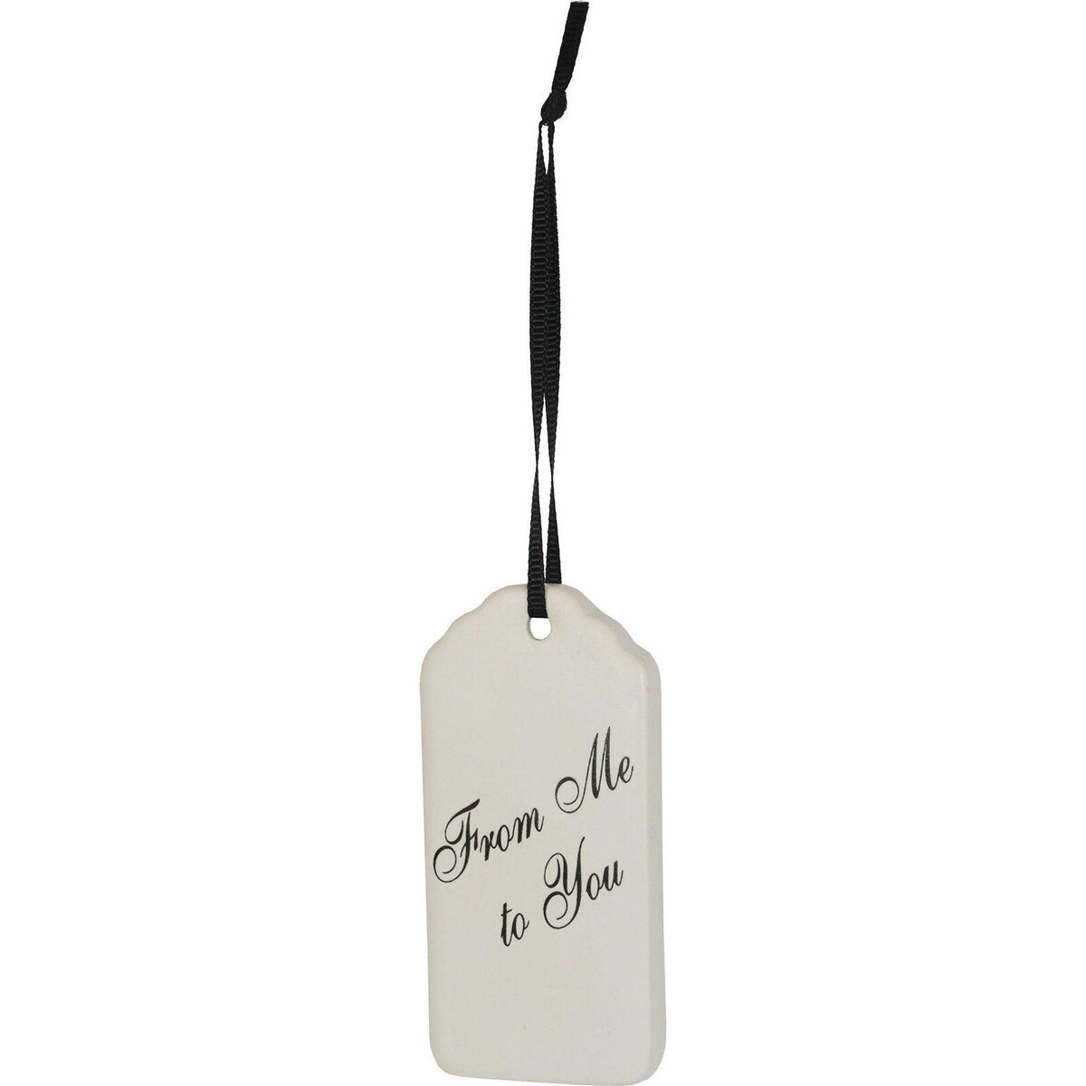 A simple little tag that symbolically puts in place the equation forever-from me to you-does in very simple words says what each heart would like to say to reach out to another-use it as a tag for a gift when you choose to give it to someone you care dearly about. Made of ceramic, its creamy white look will surely attract a lot of attention-as it is classy and very appealing in its looks unlike the usual tags. The words are ornately placed there on its face in a black print. It's about 8 cm high and 4 cm in width and has this black ribbon hanging that makes it easy for you to suspend it from handles, knobs and such places. Made of ceramic it will give a nice sort of richness to the appearance of any elaborate kind of gift you may have thought of.