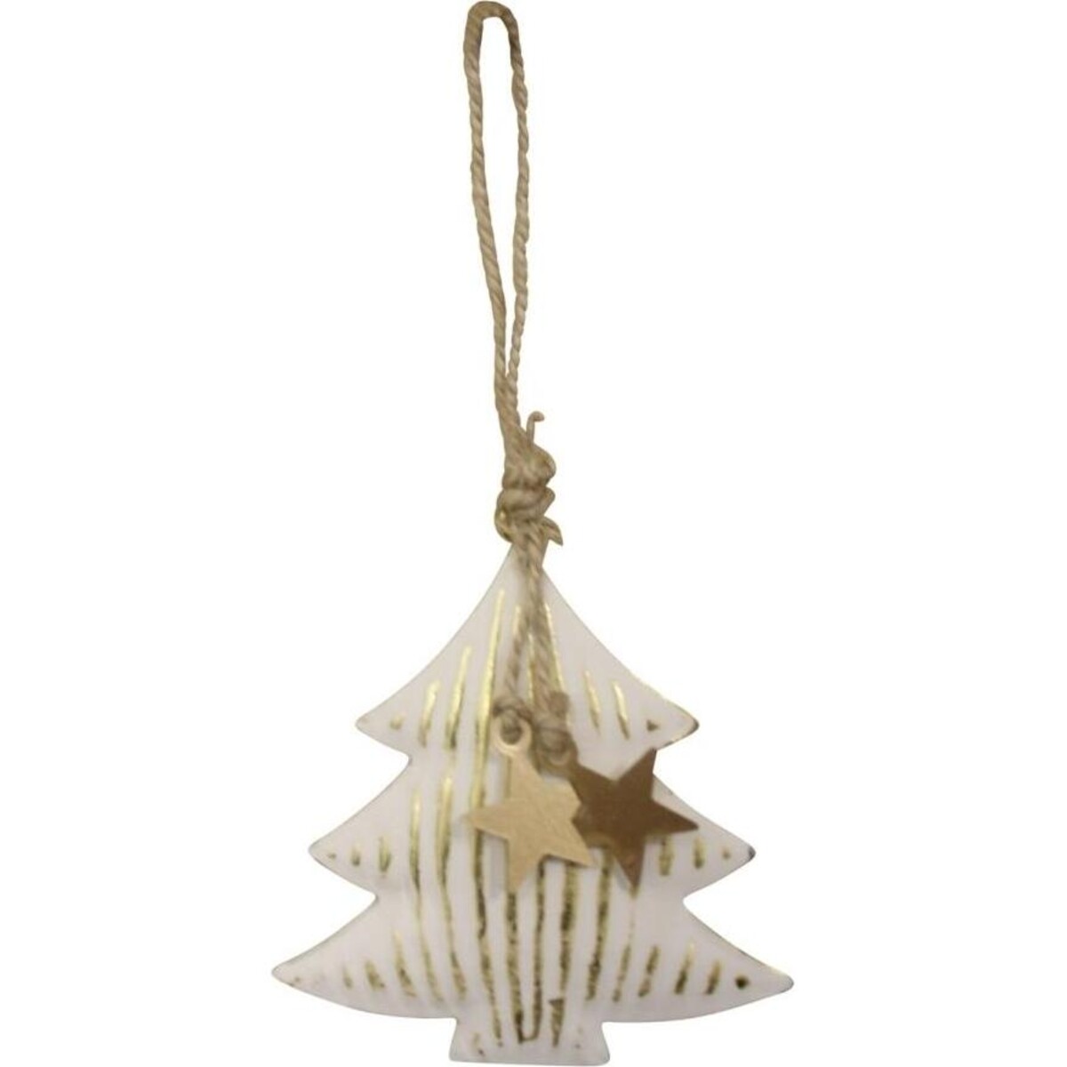The tree is central to the holiday look - after all its is what et the family together and soon turns into the most important spot for all kinds of gatherings and activities around the holiday time. Bring home the joyous presence pf the Christmas tree this season with this perfect little hangable version that combines a small little design patterned in white and gold with a beautiful handcrafted artisanal look.
