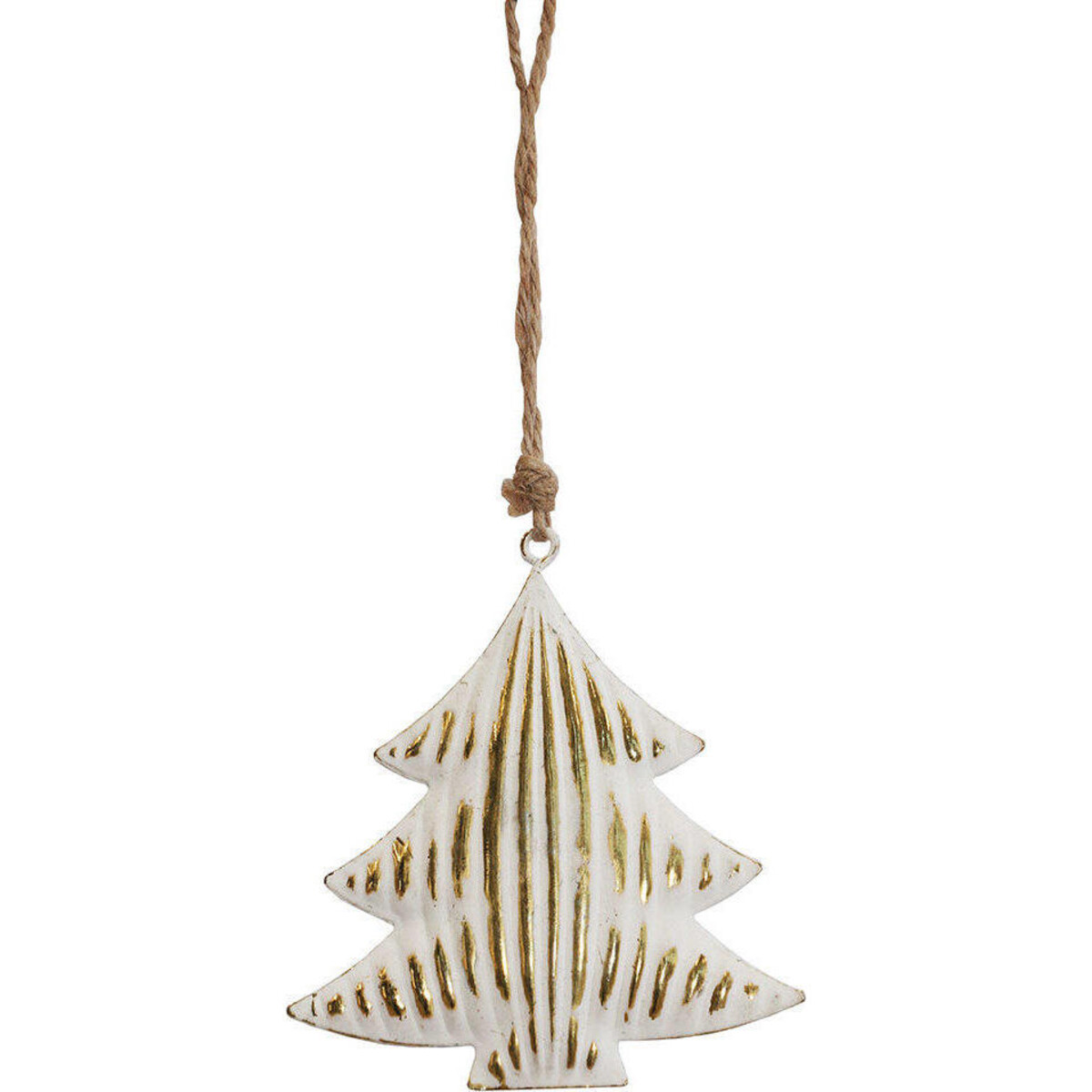 When getting your home ready for Christmas it is but imperative that you give importance to the manner in which the most enduring symbols of the season find their place in it and sure enough here is one that is undeniably the most important - the tree. This metal made hanging replicates the Christmas tree to perfection - all white with a glittery highlight along its ribbed body. It looks like a little jewel pendant and could be as much a part of the ornaments that you place on the main tree itself, or you could use it as a gift tag, a window embellishment or make a cluster of such wonderful hanging ornaments and make something truly unique for the corner. Ideas would be plenty when you have attractive additions for the décor such as this. The tree is covered in white enamel and some glittery gold and will catch the light as it sways and twirls from the string.