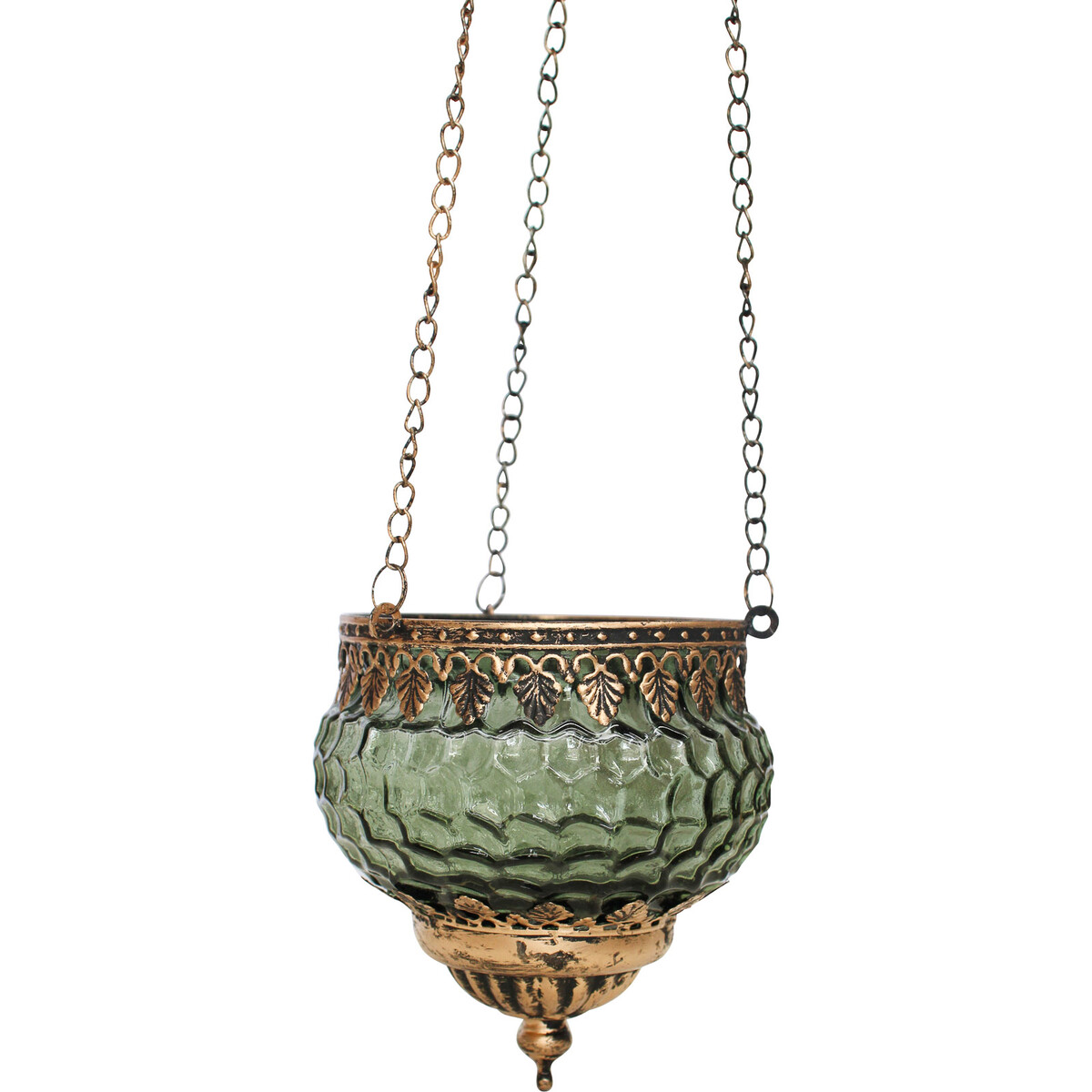 Giving customers the opportunity to save so much horizontal space while also getting to enjoy the beauty of votive candle lighting and decoration, the Hanging Votive Dots Rain is one of the many eye catching hanging votive which we have just recently added to our hugely selling category of Wholesale Decorative Glassware. Crafted through the combination of metal and glass, it can easily be hanged through the use of the pre-attached tripartite metal chain. The choice of palette of is beautiful as the glassy part is a soft green while the metallic ornamentation is bronze hued.