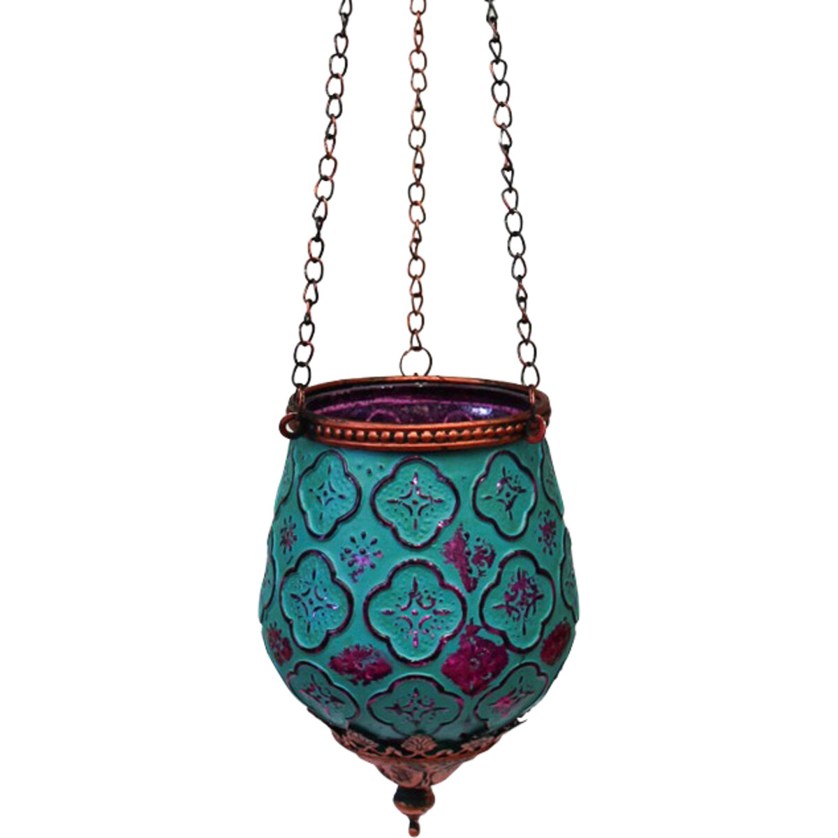 The Hanging Votive Foil Aqua Small decorative glassware is a distinct votive foil due to its energetic design and style which makes it stand out among millions of other decorative glassware. Apart from the masterfully crafted designs on the body and rim, it comes in such an adorable hue that would wow visual sensations and leaving one mesmerized. It is often thought that chandeliers rule the world of hanging decorative glassware, but, the Hanging Votive Foil Aqua Small claims otherwise. Despite being cheaper, lightweight, and easier to install, yet, it is not inferior in originality of design and feel. The artfully carved metal brim gives it an edge over most hanging glass décor. With an interior luxuriously painted in rich, royal purple and an exterior colourful finish of aqua, it would make the perfect gift item. There are 24 pieces in every carton.