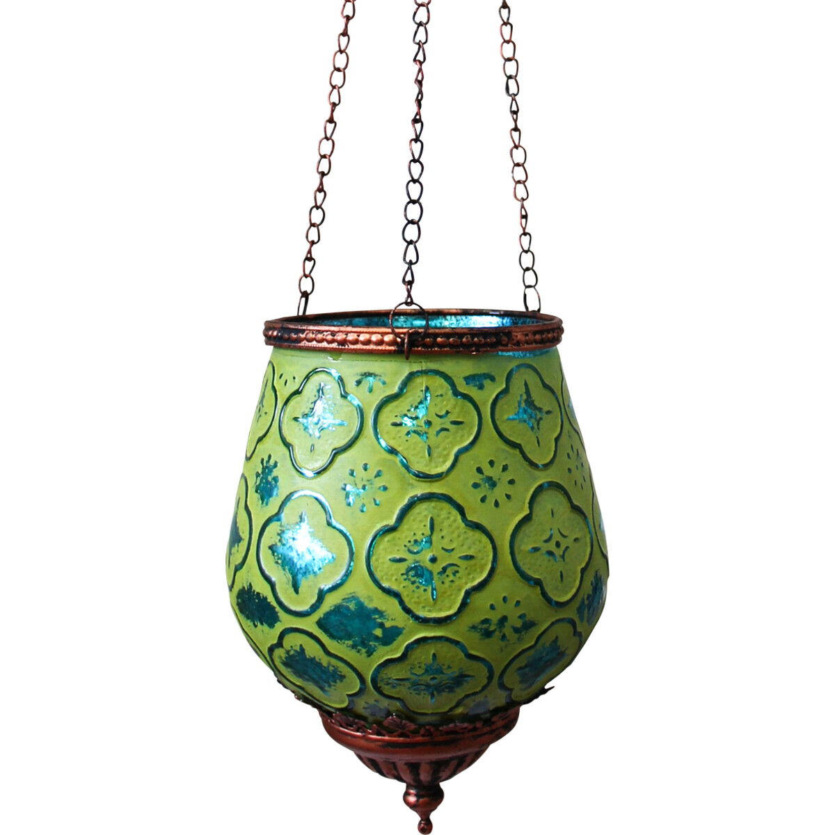 The Hanging Votive Foil Yellow Large is indeed an extravagant piece that is made of the purest of glass and the best of metal. It has a glassy body made of ornately patterned shapes. The base of this cup-shaped votive foil is made of novel metalwork which gracefully points downward like a dome turned upside down. At the brim is yet another elegant piece of decorative metalwork completes the image of decorative finesse. It would be the perfect glassware décor with which to decorate important occasions such as weddings, feasts, graduations, anniversaries, and other such iconic celebrations. The yellow colour only adds more glint to the beautiful glow this votive foil would produce when a candle placed inside is lighted.