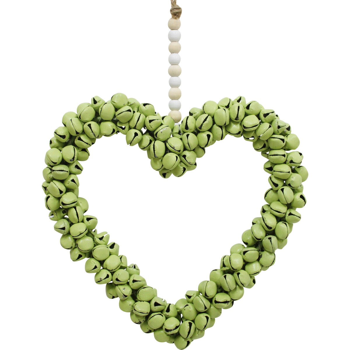 This metal artifact is an aesthetic piece that expresses love and warmth. Heart Bells Apple will breathe serenity into any interiors. The symbolic representation of love extends to all aspects of life; they exemplify affection and care in the subtlest way. Likewise, its green hue projects balance and nature. This statement piece should be valued and displayed proudly anywhere in the home. It can either be displayed indoors or outdoors and it would complement any room in the home. This ornament is sure to spread a feeling of chill and relaxation around one's interior.