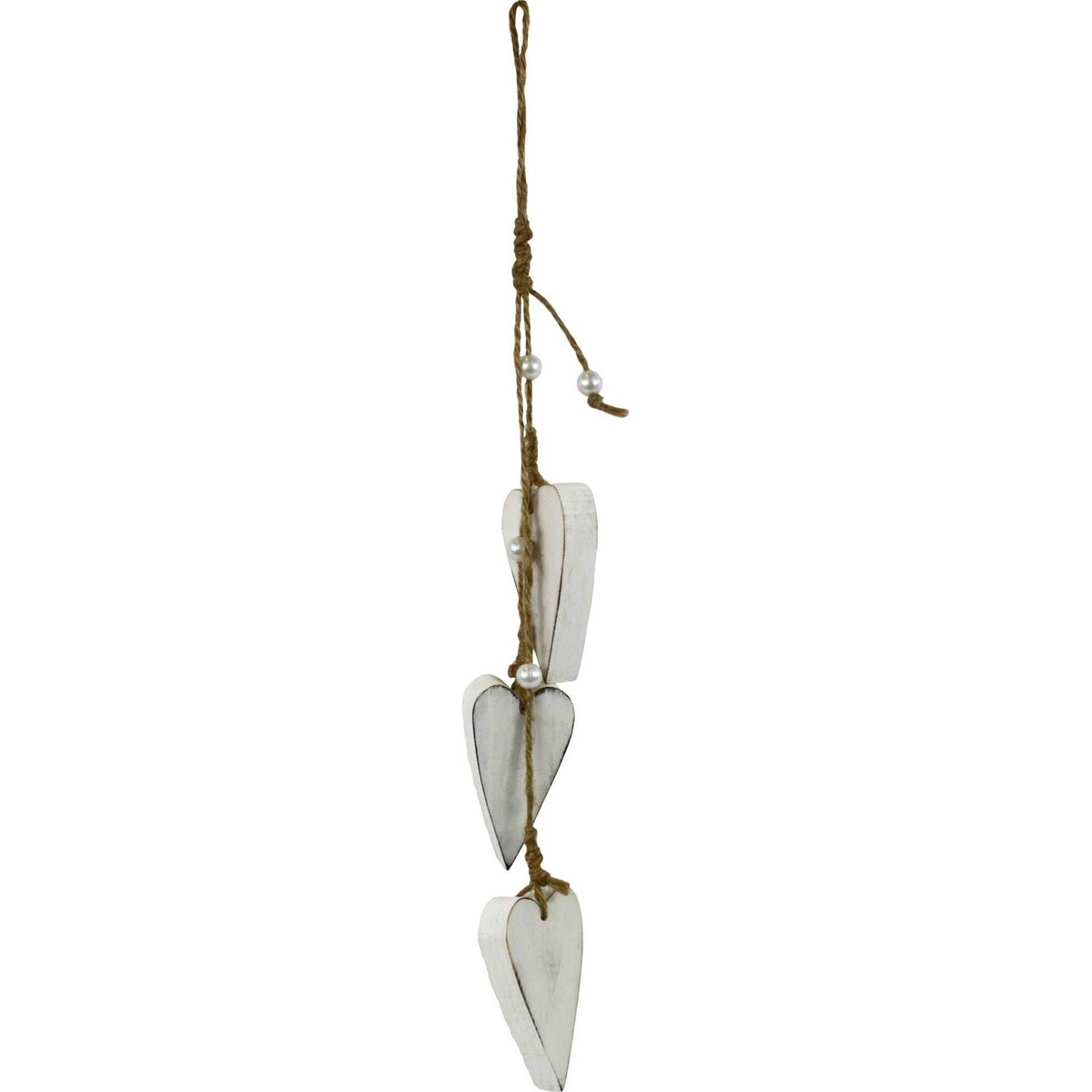 This decorative accent consists of three white wood hearts that are attached onto thin tan rope that's accented with tiny white beads. At the top is a small loop so you can easily hang this item from wherever you desire. Thanks to its size and style, the Heart Chain Trio can fit well into even the smallest spaces from your bathroom wall to your front porch. You'll certainly feel the love whenever you look at it on a daily basis. Whether your home is decorated in a country chic style or contemporary, this piece is going to make a lovely addition to any room.