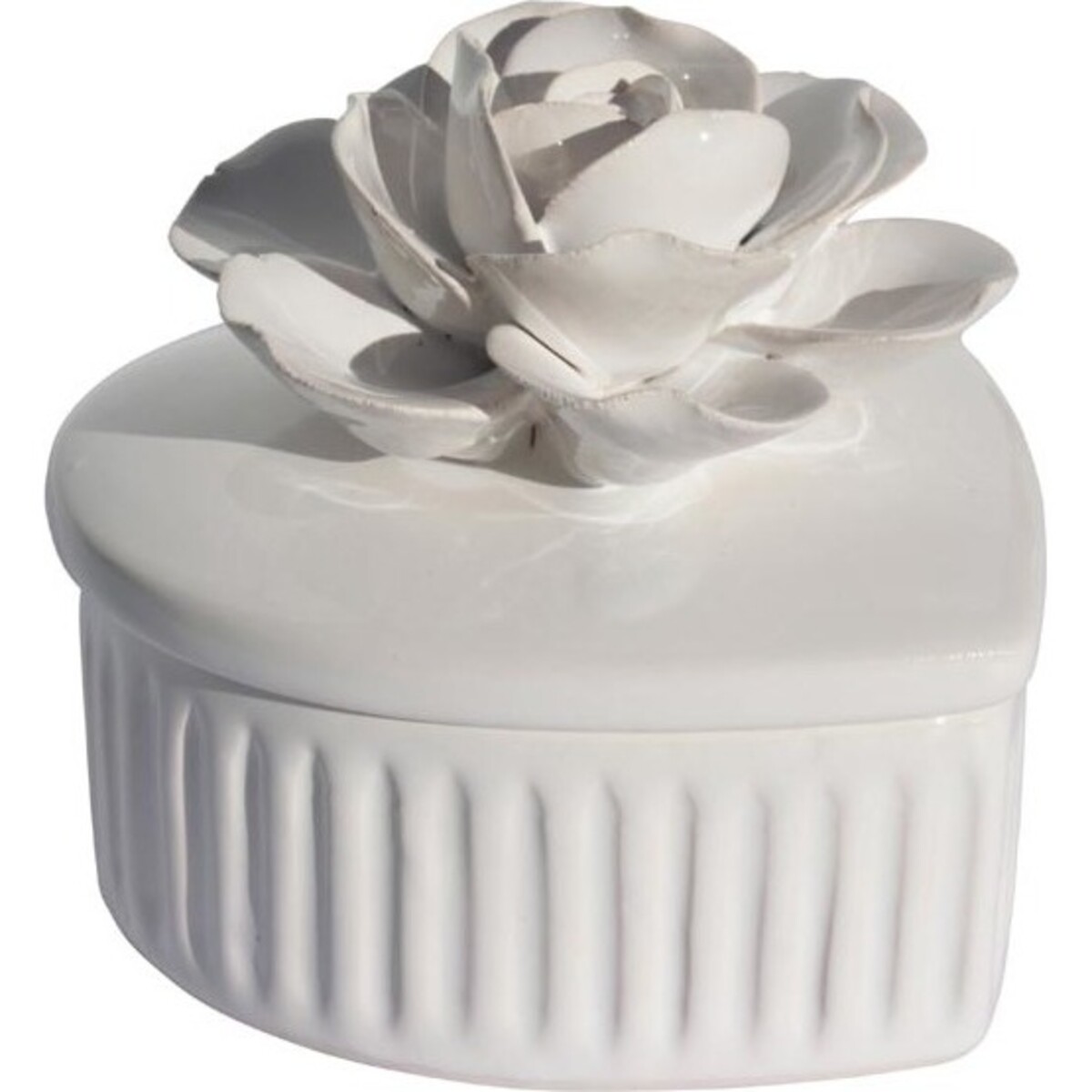 Heart Trinket Box - Peony White features a ceramic white beauty that is perfectly polished. Atop it is an adornment in the form of a crafted rose. It is classy and yet simplistic in design.