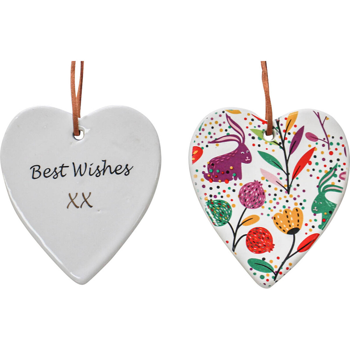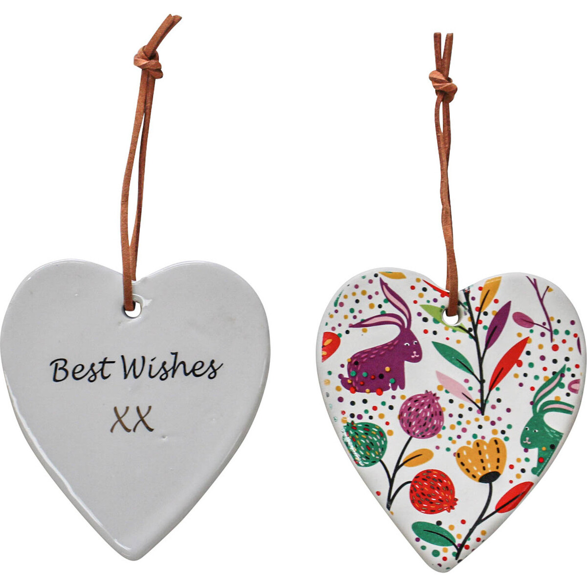 Traditionally, Rabbits symbolizes fertility and longevity, these are literary the warmest wishes. Heart Vintage Rabbit is a rabbit themed ceramic hanging hearts that comes in handy to adorn one's interiors. This piece can be used to accentuate a wrapped gift for a bunny loving friend. This item features white painted ceramics with beautiful detailing and a glaze finishing. This product is made with a proclivity for durability.
