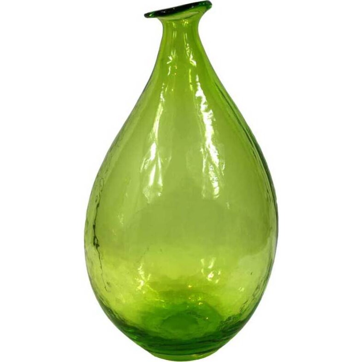 This vibrant green glass bottle features a raindrop shaped body with a slanted lip, a perfect addition to any area in your home that needs a little livening up. While it's ideal to display as is, you can also fill it with a few large flowers such as hydrangeas or with a large bouquet of flowers and set it right out where you can see it on a daily basis whether it's on your kitchen table, on your end table in the living room, or even on the porch. It's going to be a fantastic addition to your home.