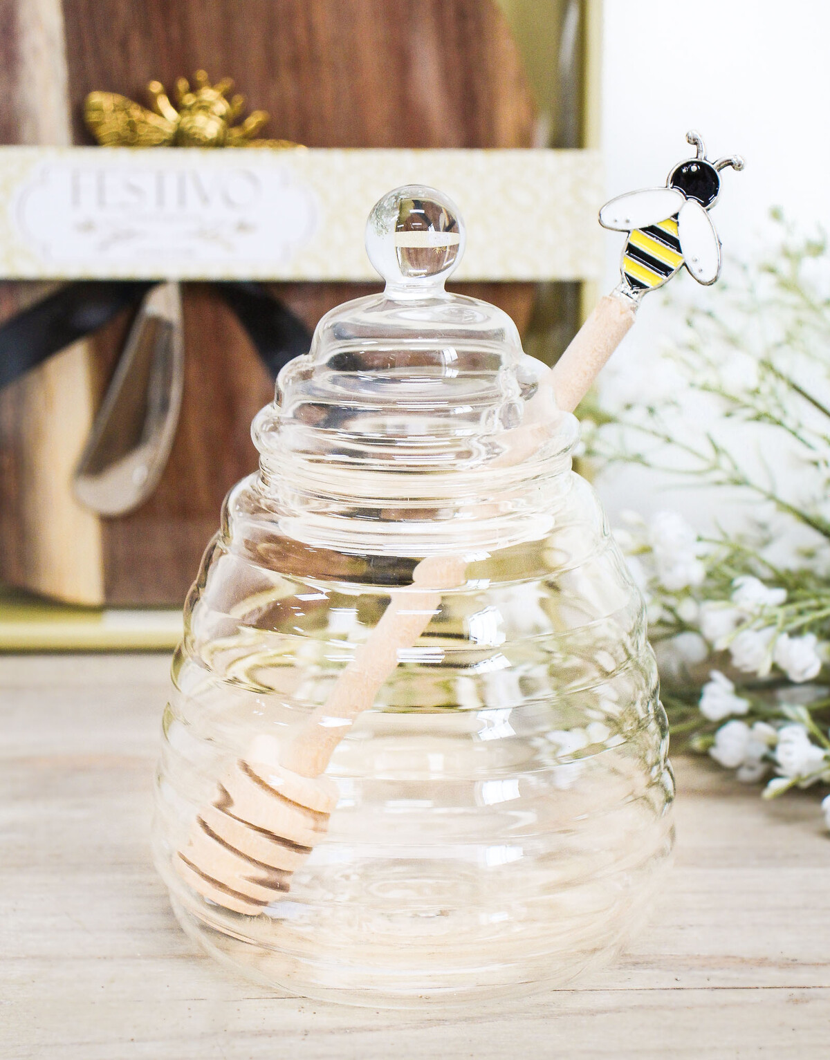 With the Honey Pot and Dipper, we get to bring a bit of fun to a practical product - but still keep the top level of quality. This really is something special. Standing at 18.7 x 16 x 8 cm, this glass honey pot gives that classic beehive look, but in a way that's quite modern and easily fits into any kitchen or dining area. The cheerful little bee topping the wooden dipper? It's such a nice touch - very sweet (pun intended). It turns what could just be a kitchen accessory into something that works as decor too. And it makes customers smile.