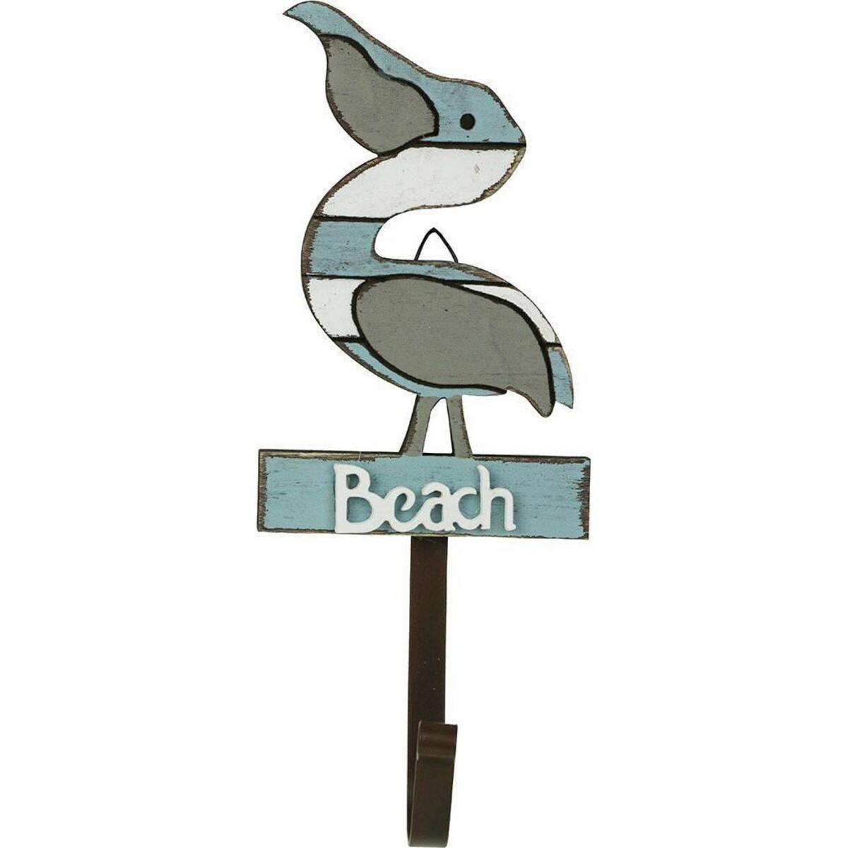 The pelican sitting on top of this single hook bracket seems to feel that it has landed on its natural perch and seem to be looking out to the horizon and the blue seas. The blue and white colour of this article makes the thematic colours also look superb. The hook has been crafted from hardy strong metal and will withstand holding even heavy satchels and also multiple articles. The pelican has been fabricated from MDF and ears certain shabby chic elements too. Place this on the wall of your home and see how wonderfully it adds to the beach and coast theme while hard at work as a wall hook. The word beach that is placed right below the bird is in three dimensional lettering and thus adds more charm to the entire look of this one single hook. The height is all of 21 cm and the width is 9 cm while the depth from the wall to the tip of the hook is only 5 cm.