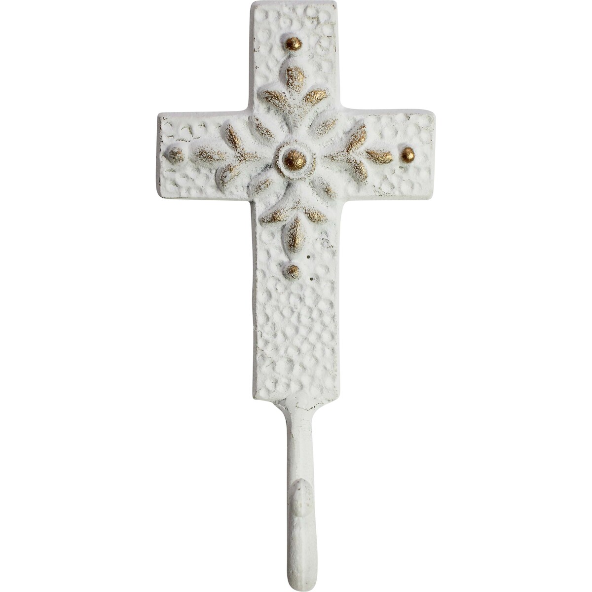 The Hook Cross Classic is a really interesting piece. It's got this old-world, classic vibe - simple hammered metal, painted white and highlighted with gold distressing. We think it’s an understated way to add a sense of calmness and meaning to a home. Or office, actually - we always get asked for things that make home offices feel less cold. The measurements are 8.8x4.3x18.2cm, so it really works well even in fairly tight spots.