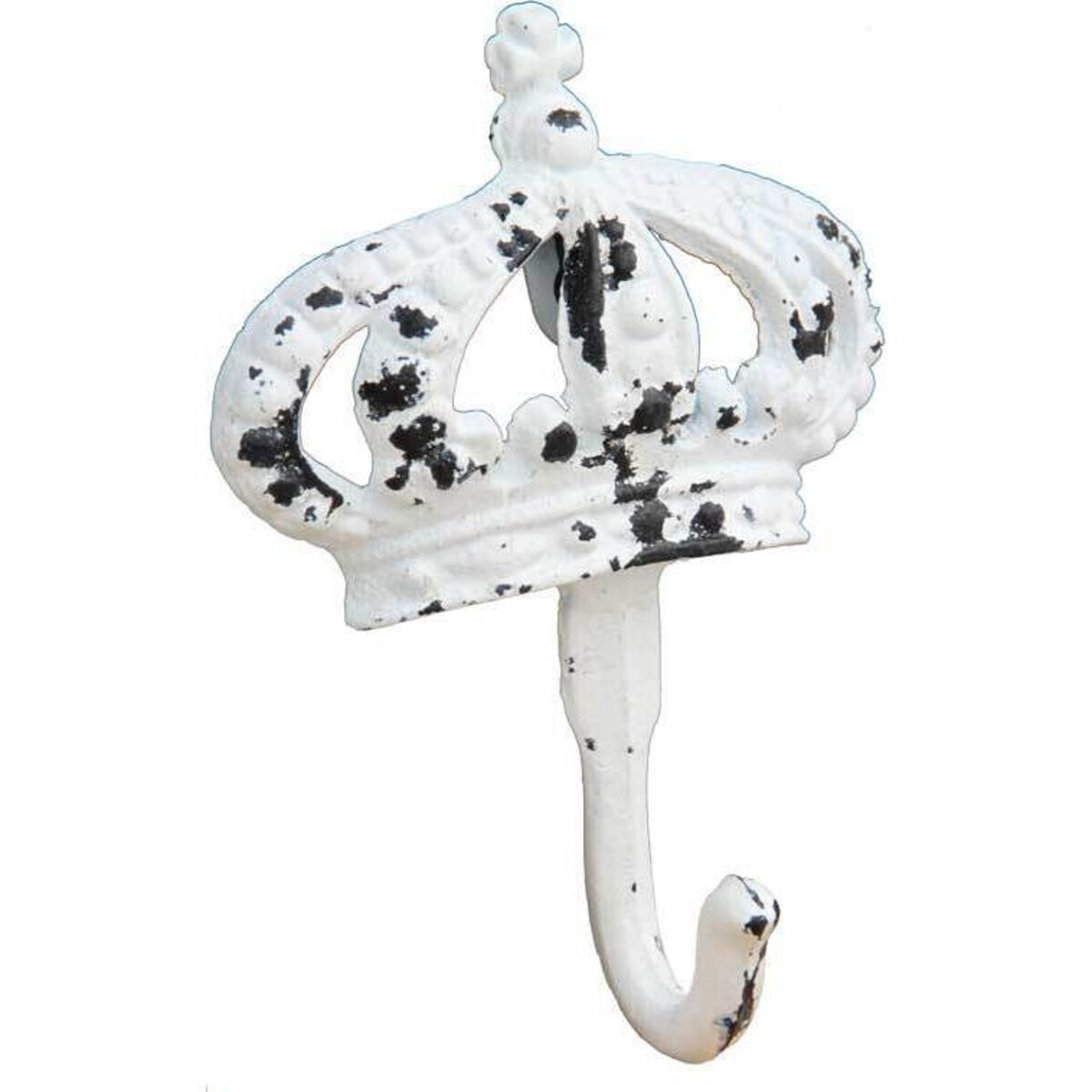 Metal crown hook with multiple uses in distressed paint finish bringing out the antique feel and the design detail with much clarity.
