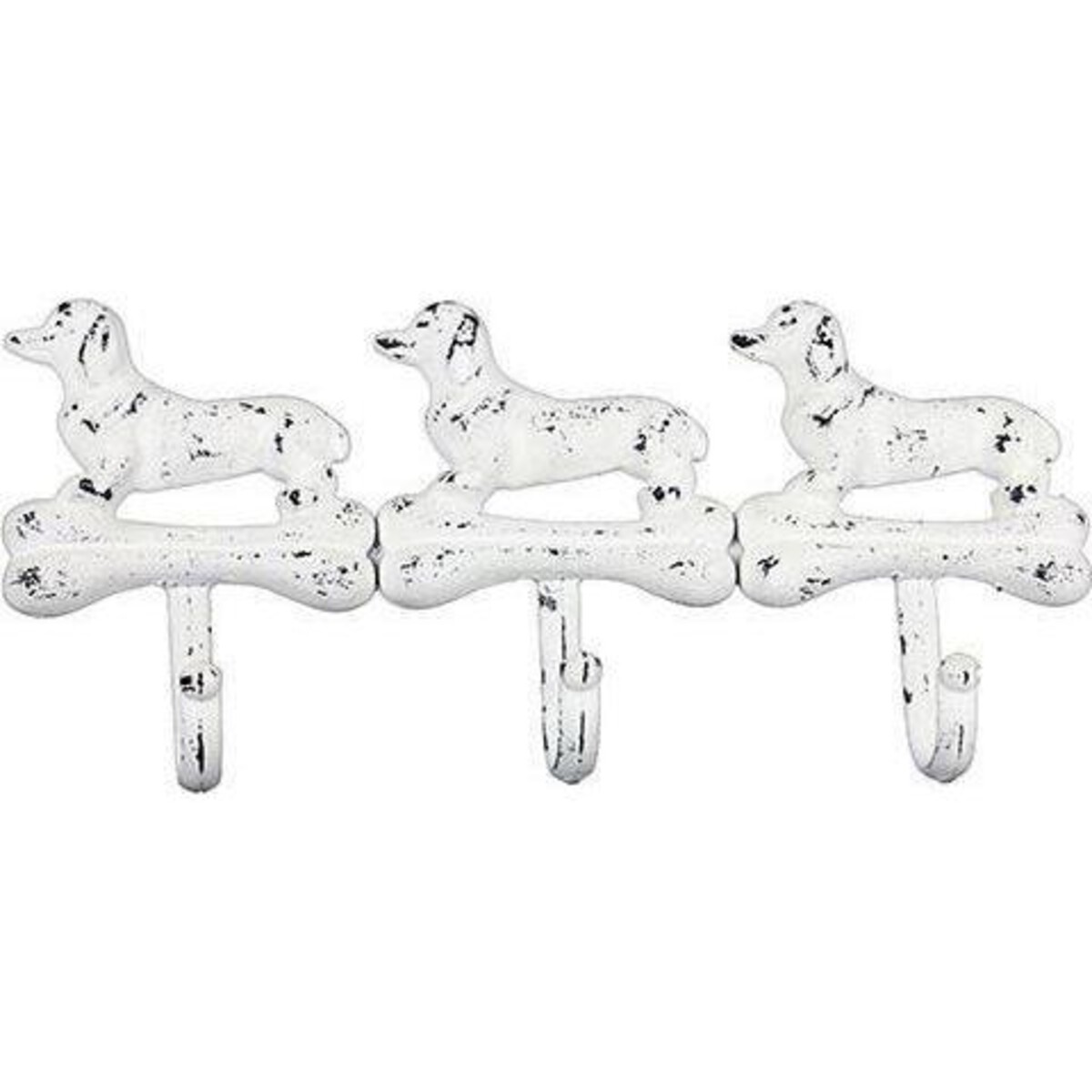 Three dogs, each guarding his bone with absolute zeal - the very concept of using this wonderful creature and his most prized bone as the design idea itself steal your heart right out. Would look fabulous in the childrens'room holding steadily on to their numerous satchels, game bags, maybe even their racquets and coats. There are several very good reason for making hooks apart of every room and when they come in sturdy design fabricated from antique looking metal the effect on the décor it's also something to be happy about. This little hook set with three prongs is a great way of adding a vintage shabbiness to the décor. The white finish of the paintwork, the defined figures of the dogs, the rugged appeal of metal ?all of these make it such a charming little accessory for your home. The length of the bracket is all of 31 cm and its height is 15 cm, making it perfect for a small sized space that could be used for hanging what otherwise clutters up the tables and chair backs.