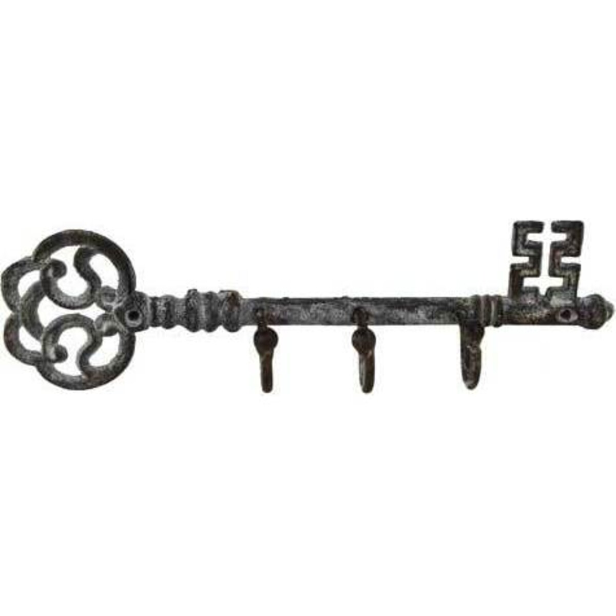 This unique key hanger is shaped like an antique key with a gorgeously patterned head and a long torso that has three hooks with rounded ends. There are two slots provided for adding rivets that will help mount this little piece of design wonder. The ornate pattern, classic good looks elevates this key hanger from being simple piece of utility to a wonderful add on to the decor. The Key holder will be useful not just in homes but also in offices or commercial places that always need a place to hang important keys from. The antique look, the rugged finish with its distressed metal look is all in keeping with the shabby chic flavour that most decors can easily adapt to. It can be a wonderful addition to a home and it could work as a great gift as well. Placed on a wall it would not just catch everyone's attention but help hugely in keeping important keys well within reach.