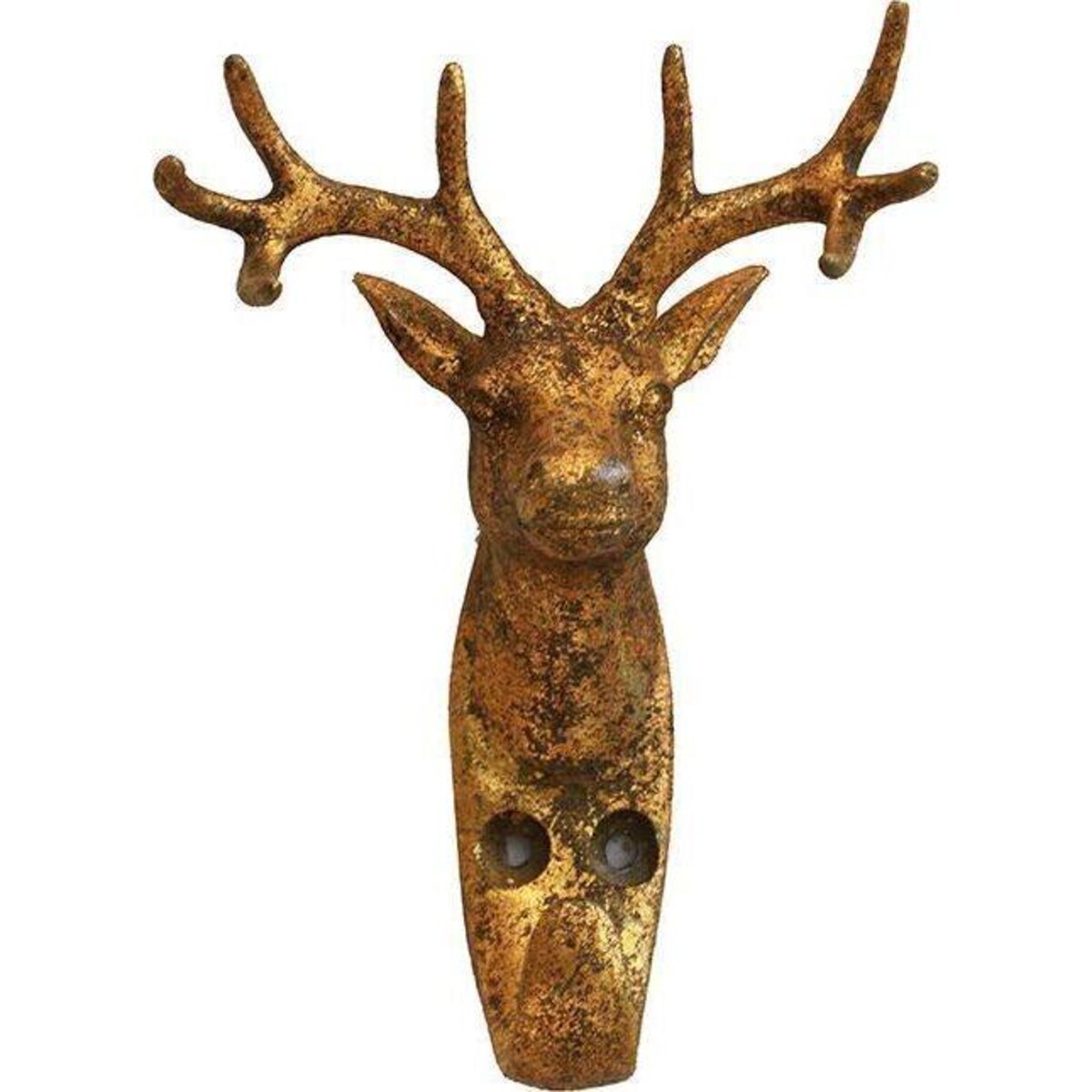 This deer head hook set is a classic means of making the wall space count towards making it as much part of the resource for keeping your spaces looking cleaner and free of clutter. A beautifully designed hook that has a handsome deer head peering across as if interested in seeing how well he can help solve your problem of decluttering. The synergy in the design allows you to use the antlers as tiny little hooks for placing smaller articles on them while the lager hook at the lower side could be used for larger articles. The metal hook is sturdy and the gorgeous shape of the muzzle, the ears and the proud looking antlers makes it truly attractive. The rich golden colour adds a hint of antique charm to it. Placed at the entrance of the house, in your closet, behind doors in the main bedroom or the children's room , it would be of great help to keep things off the backs of chairs or on the table making things look more organized and less messy.