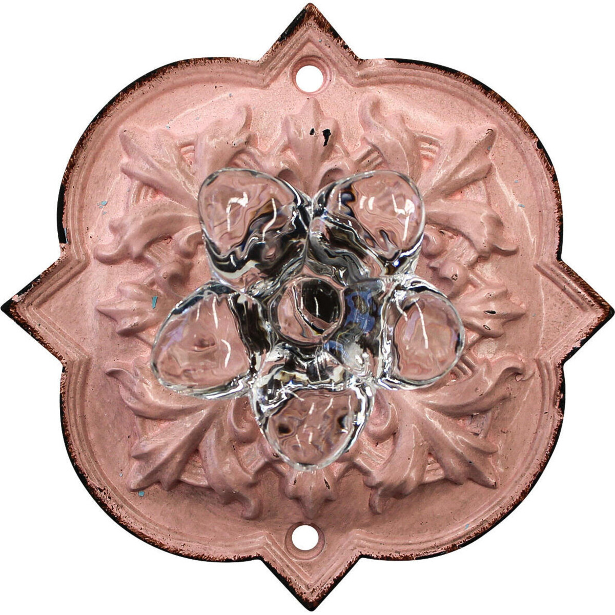 Keep your spaces looking its best with the help of this hook that brings to you a sturdy structure as well as a fine colour pop sure to liven up the wall, albeit tiny-only 9.5 cm in dimension, the bracket made of resin shows off its rusty edges in bid to look shabby chic and vintage and does a great job at it. Despite the rust marks, the sturdy bracket will cling on well to the wall or door, where you decide to place it and its round knob like crystal look hook will hold on well to coats scarves and the likes. Add more such hooks to the wall and breathe easy when it comes to keeping your wall spaces well organized. The pink coloured backing of the round knob also lends it a lovely elegant and cheery look.